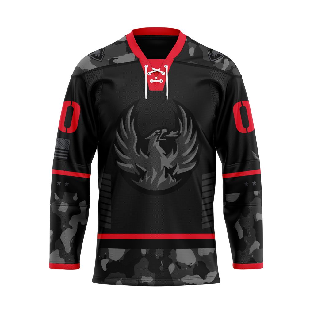 AHL Coachella Valley Firebirds Personalized 2024 Military Appreciation V-shaped Hockey Jersey Design