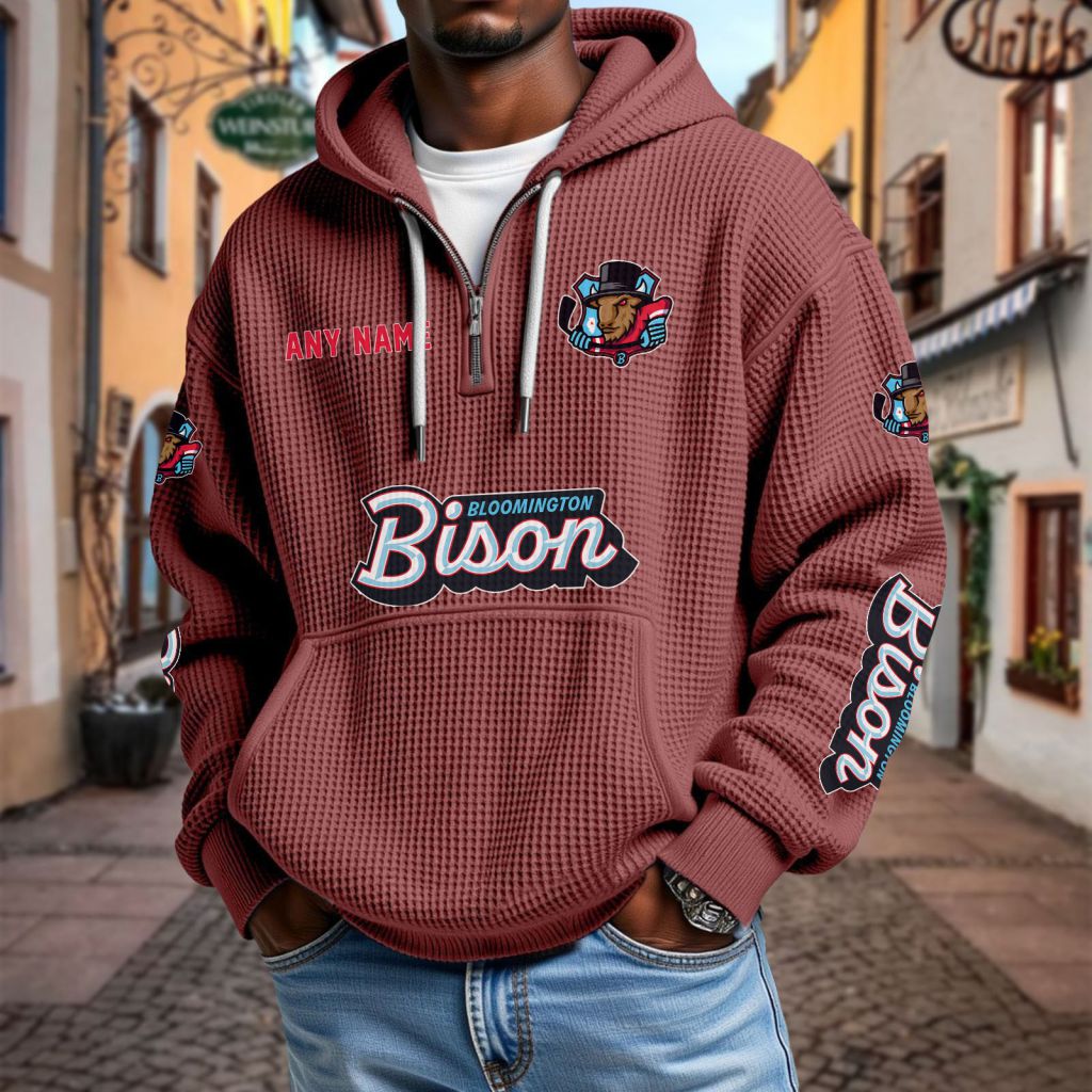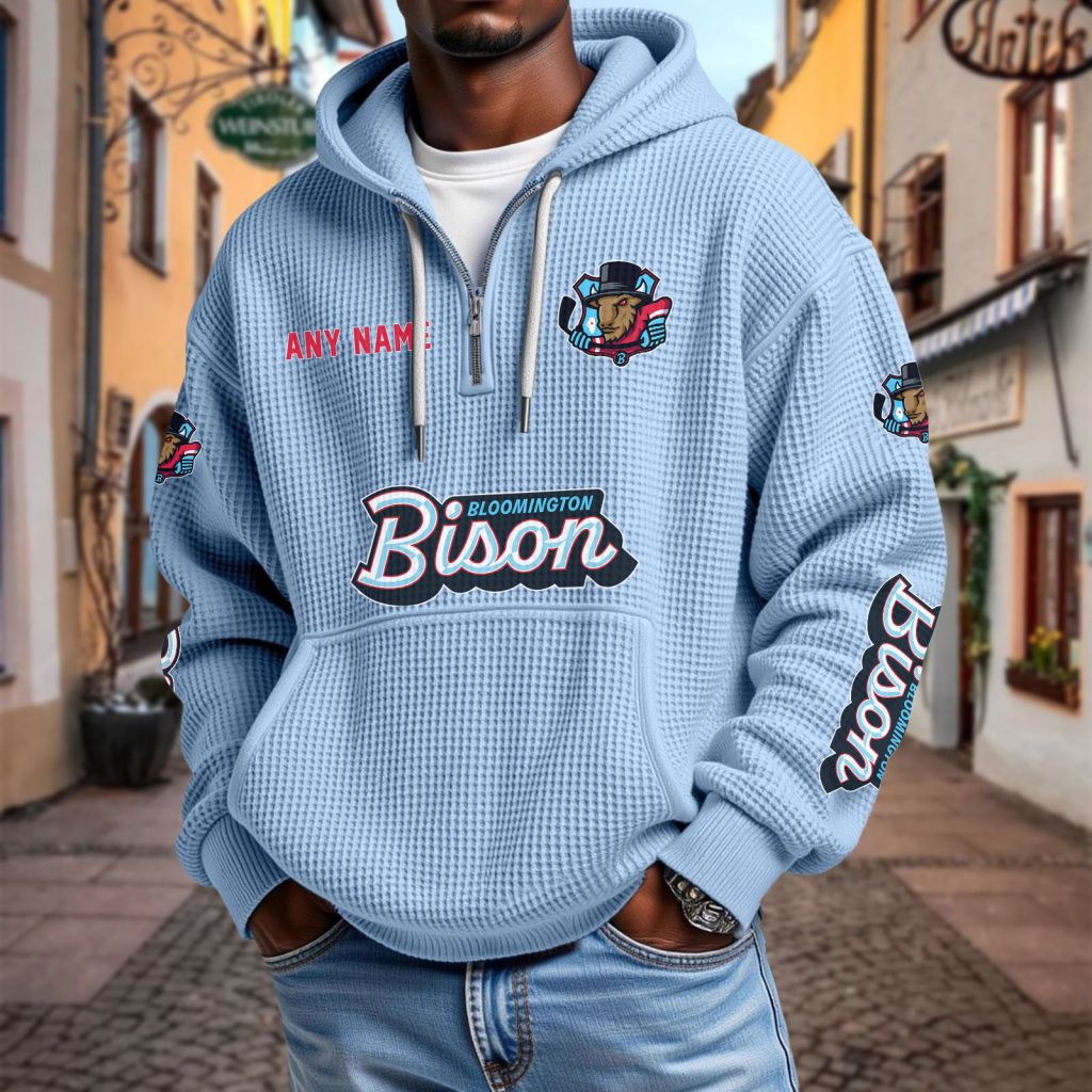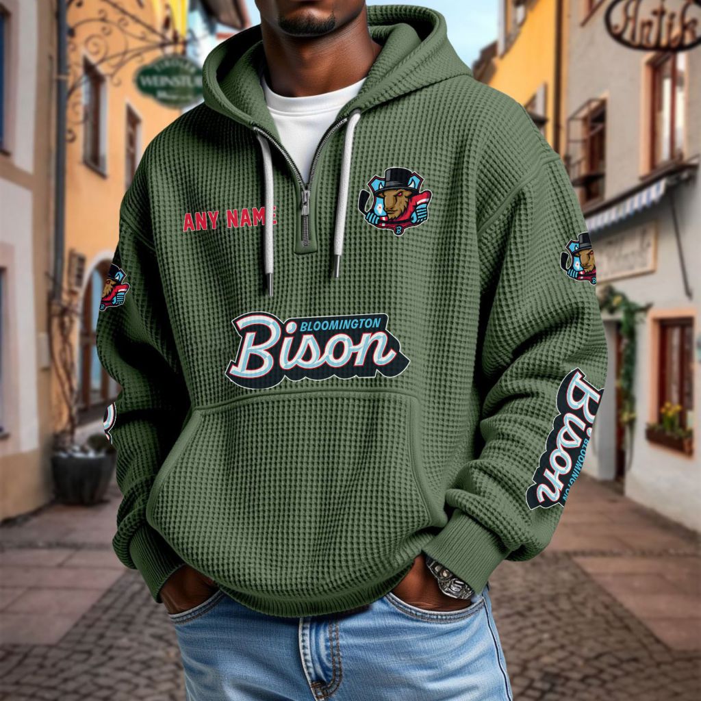 ECHL Bloomington Bison Personalized Name Waffle Quarter Zip Hoodie Design ST2501