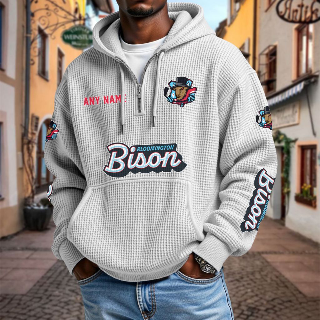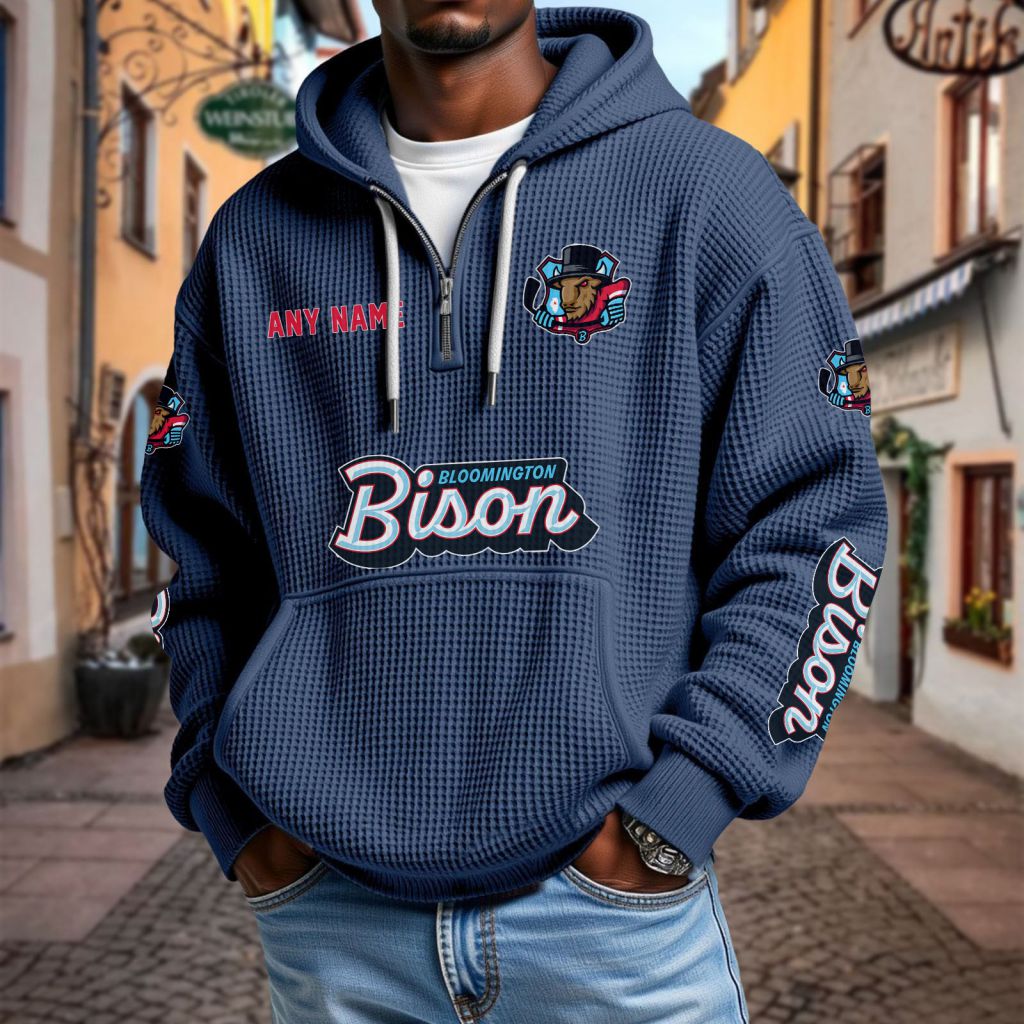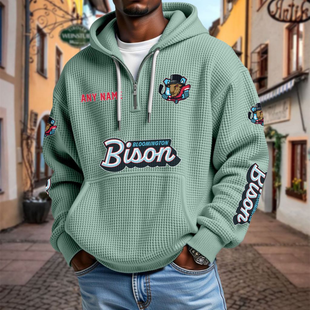 ECHL Bloomington Bison Personalized Name Waffle Quarter Zip Hoodie Design ST2501