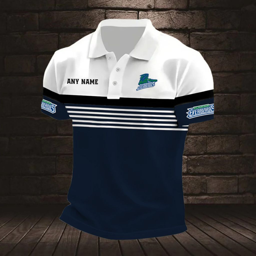 ECHL Florida Everblades Personalized Name Stripped Multi Color Polo Design ST2501