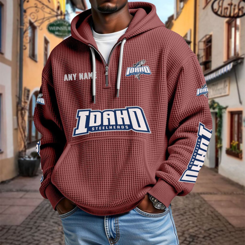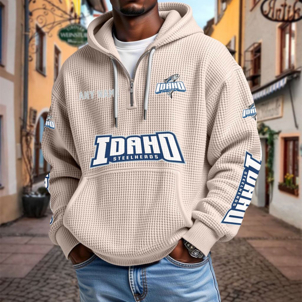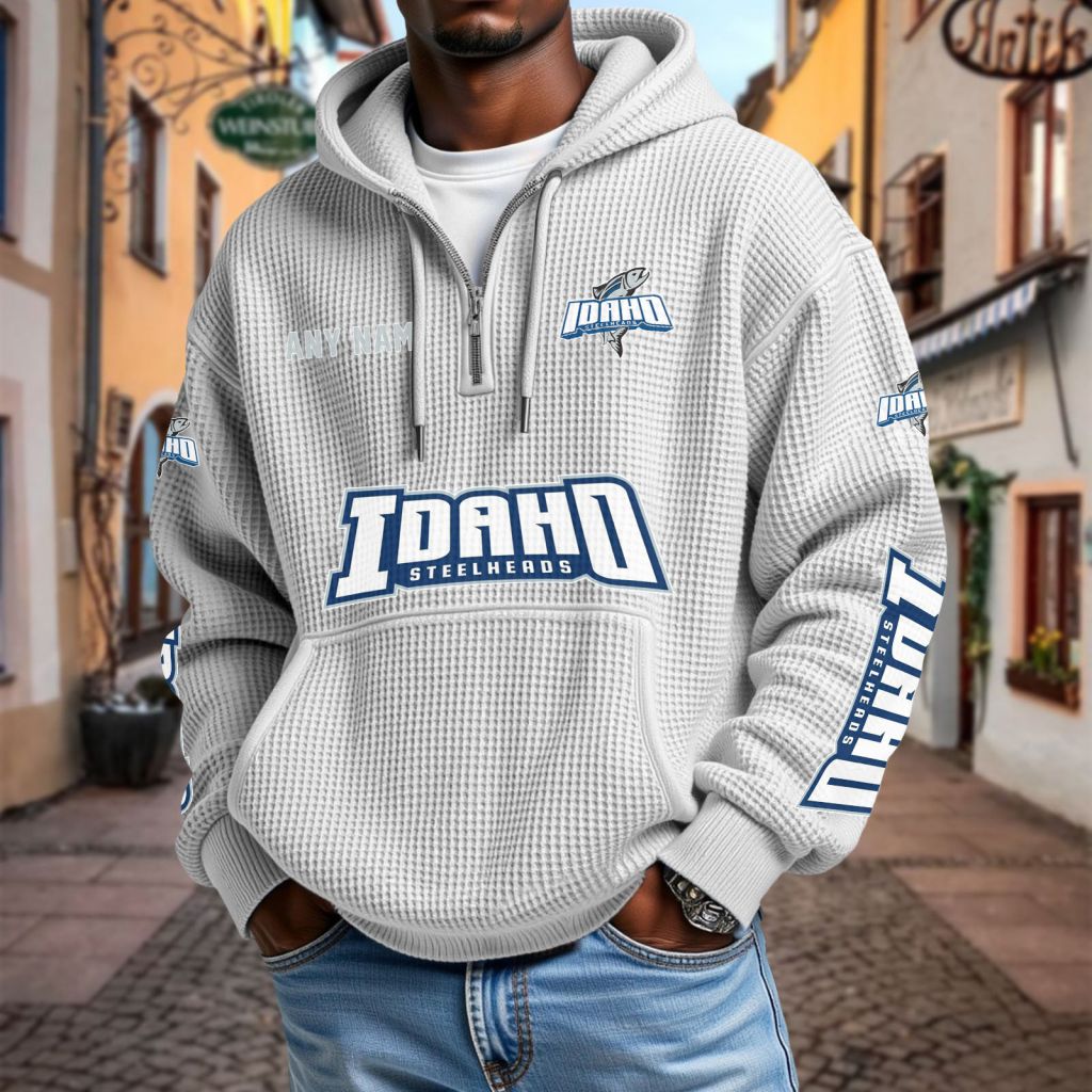 ECHL Idaho Steelheads Personalized Name Waffle Quarter Zip Hoodie Design ST2501