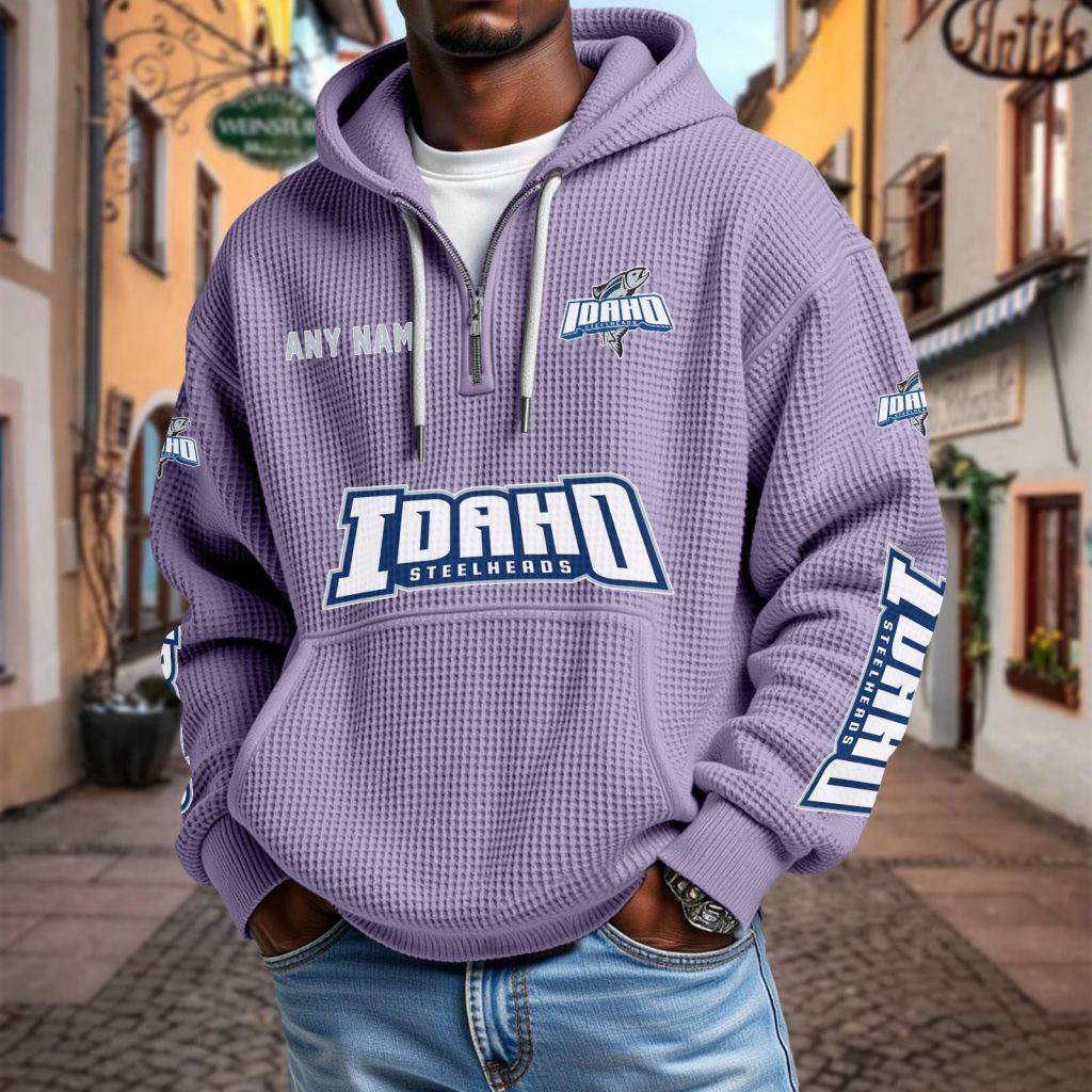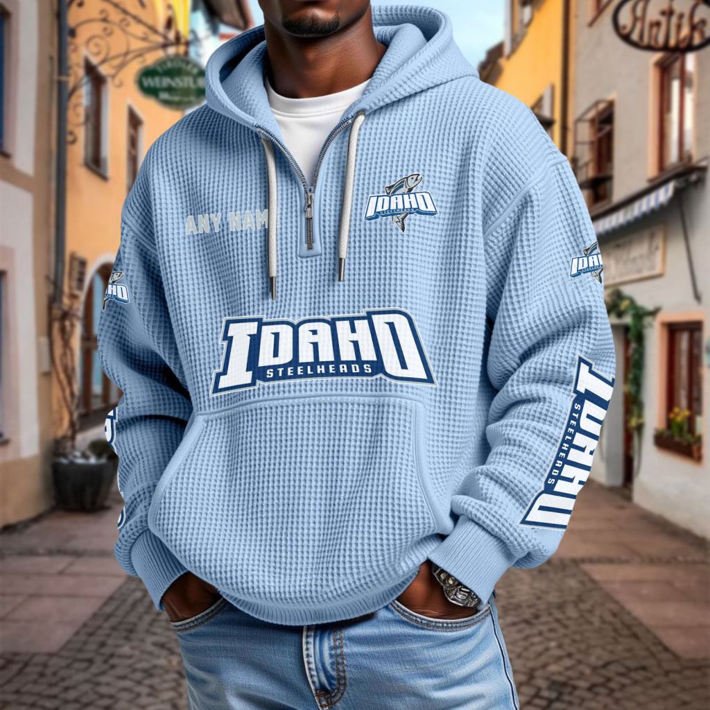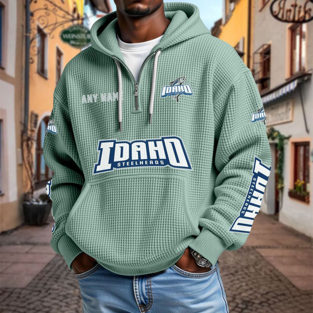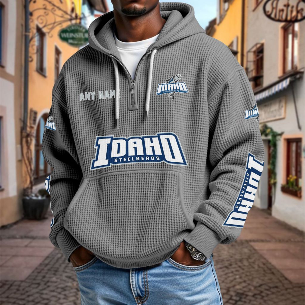 ECHL Idaho Steelheads Personalized Name Waffle Quarter Zip Hoodie Design ST2501