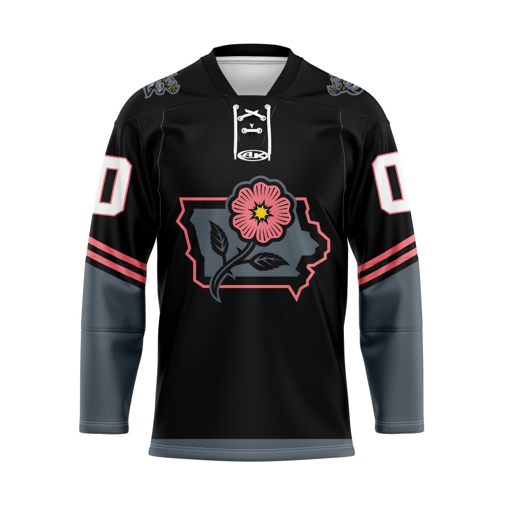ECHL Iowa Heartlanders Personalized 2025/26 Black With Iowa Rose Lace Hockey Jersey
