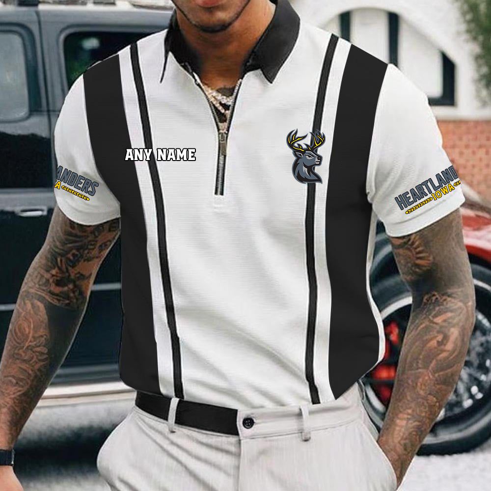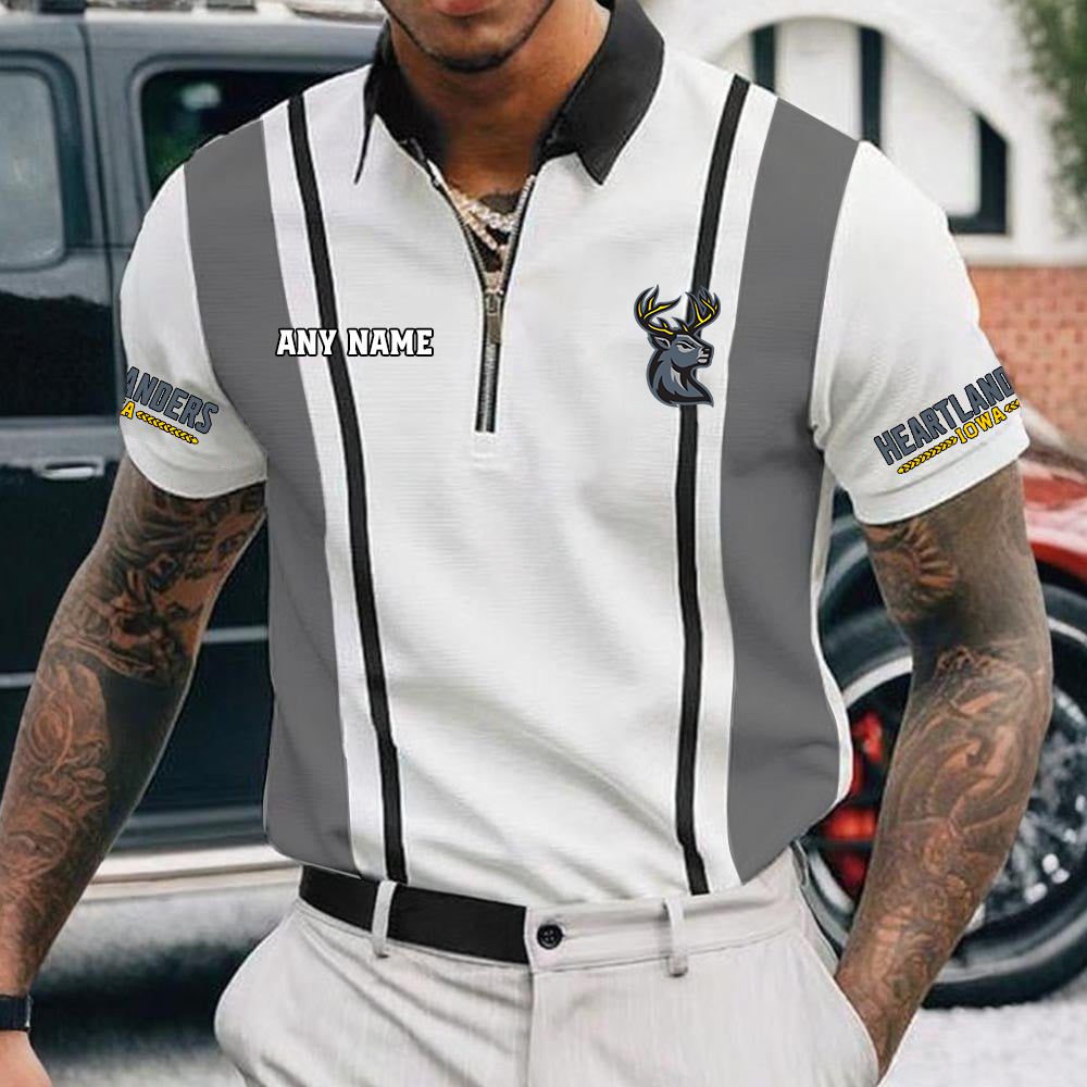 ECHL Iowa Heartlanders Personalized Name Multi Color Zip Polo Shirt ST2501