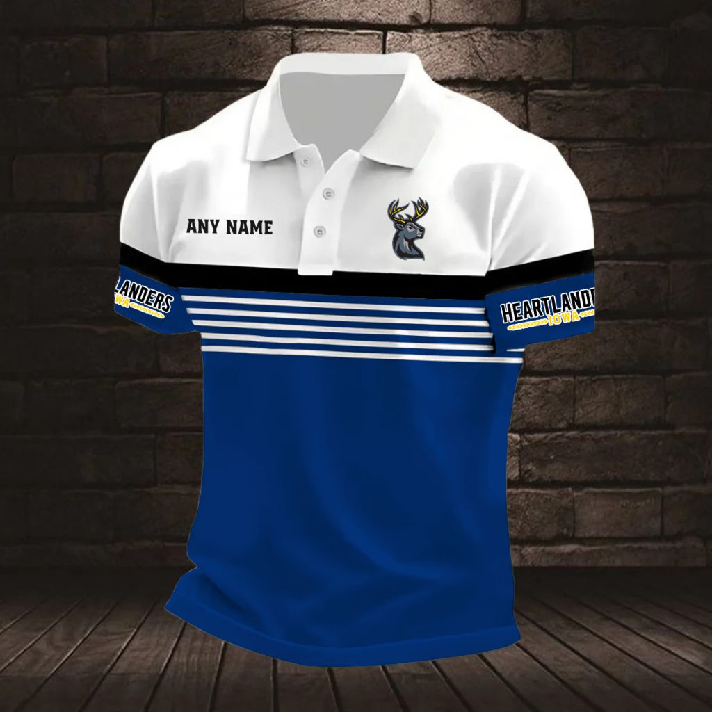 ECHL Iowa Heartlanders Personalized Name Stripped Multi Color Polo Design ST2501