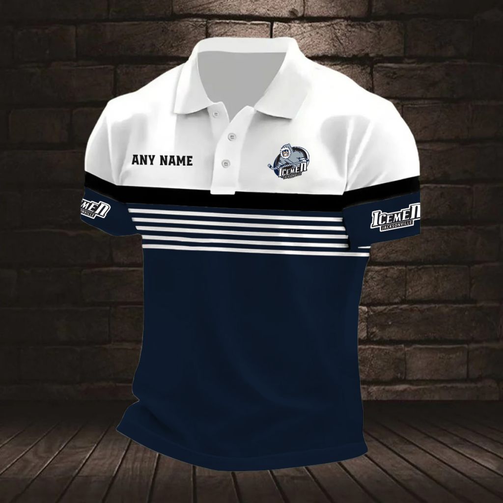 ECHL Jacksonville Icemen Personalized Name Stripped Multi Color Polo Design ST2501