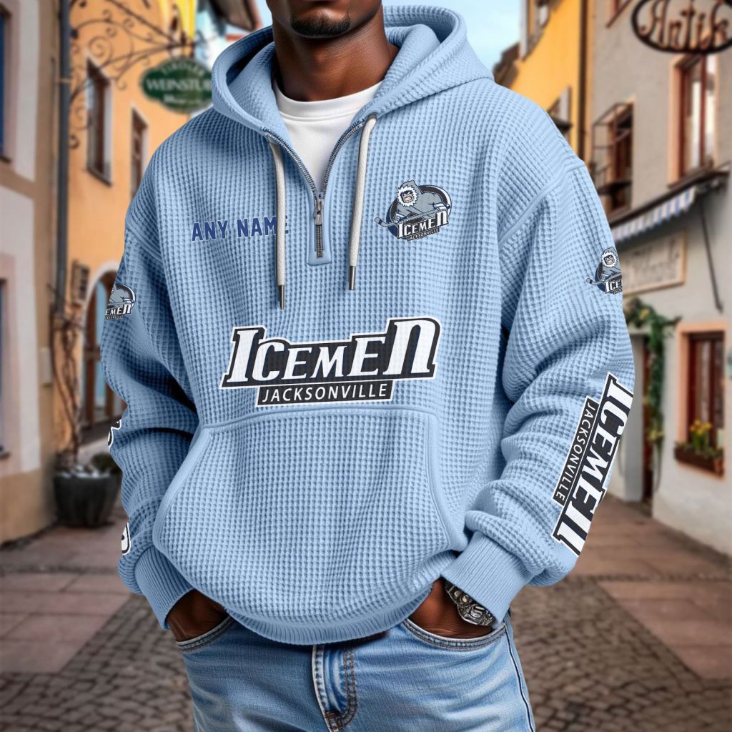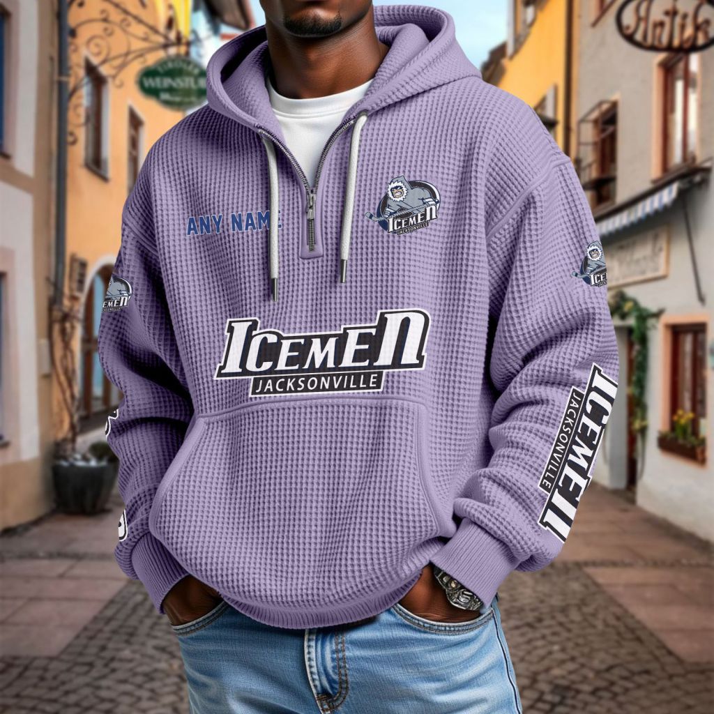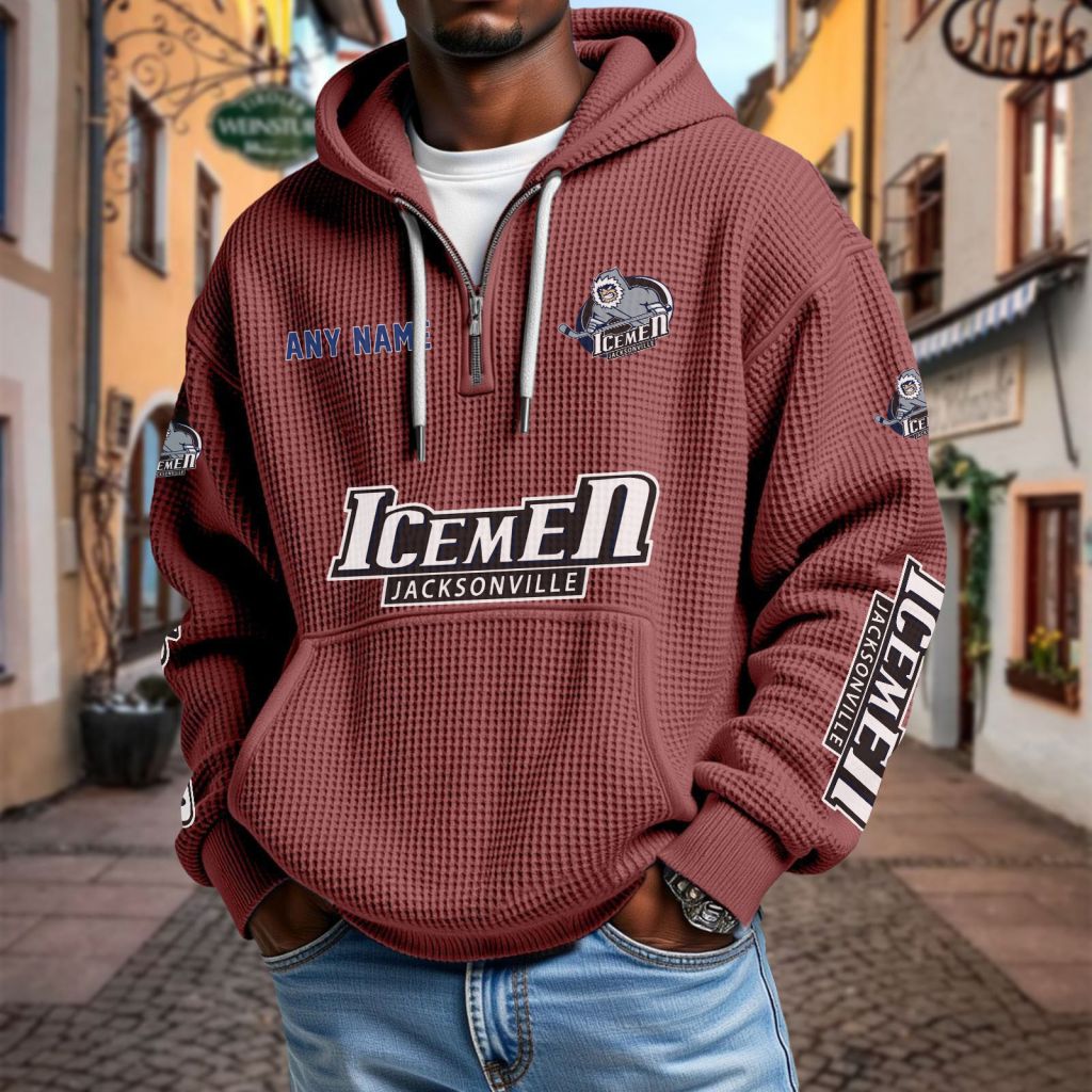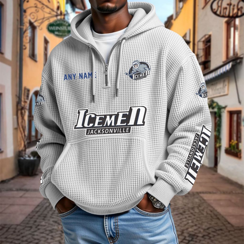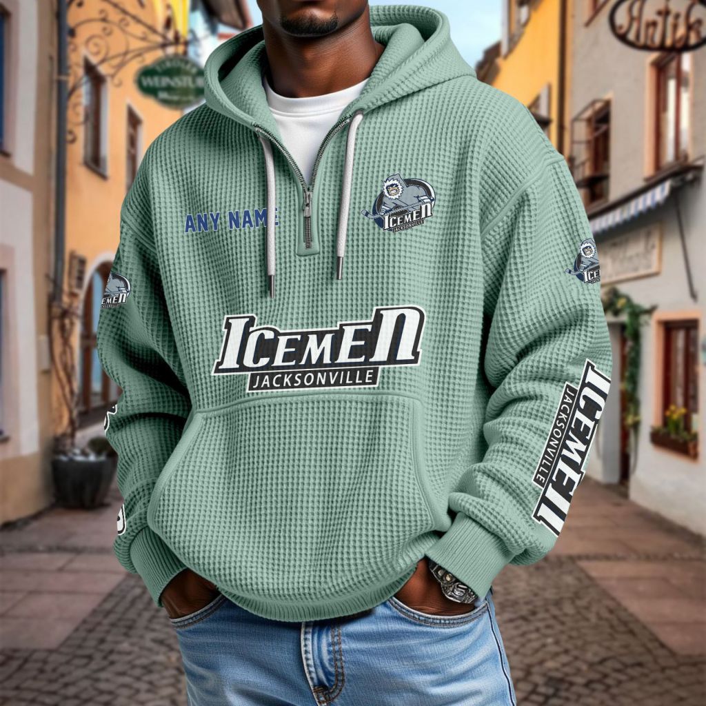 ECHL Jacksonville Icemen Personalized Name Waffle Quarter Zip Hoodie Design ST2501