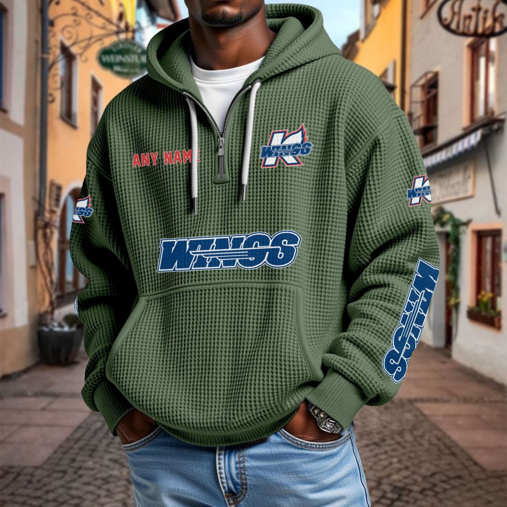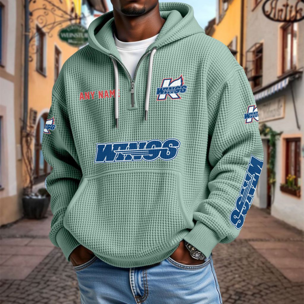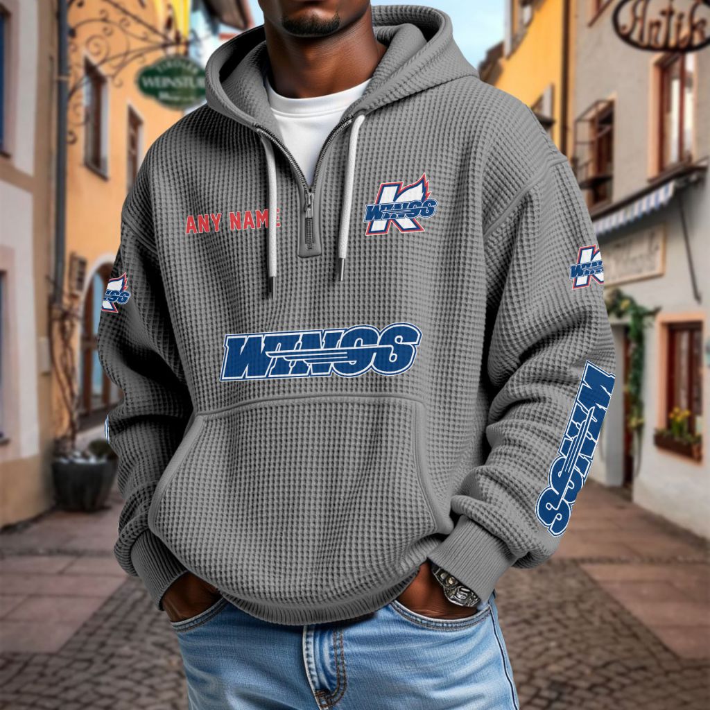 ECHL Kalamazoo Wings Personalized Name Waffle Quarter Zip Hoodie Design ST2501