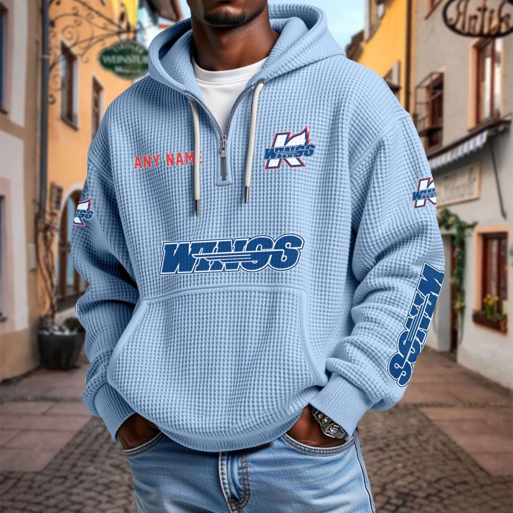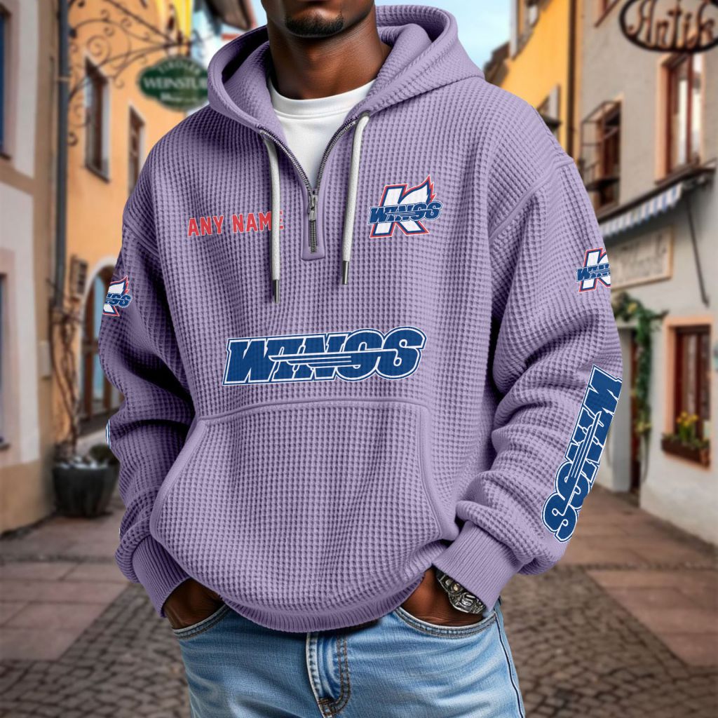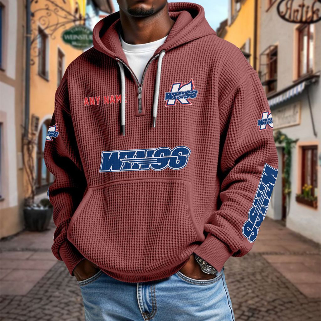 ECHL Kalamazoo Wings Personalized Name Waffle Quarter Zip Hoodie Design ST2501