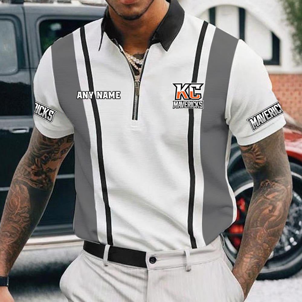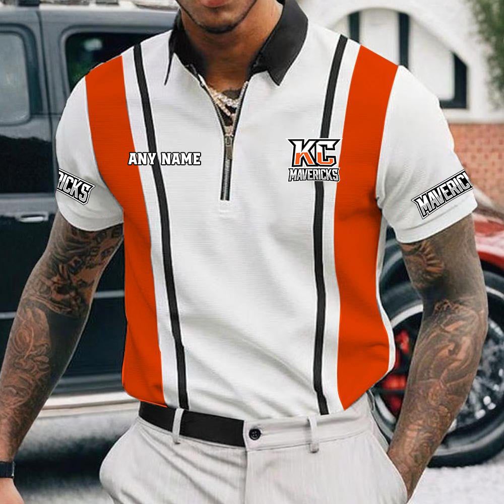 ECHL Kansas City Mavericks Personalized Name Multi Color Zip Polo Shirt ST2501