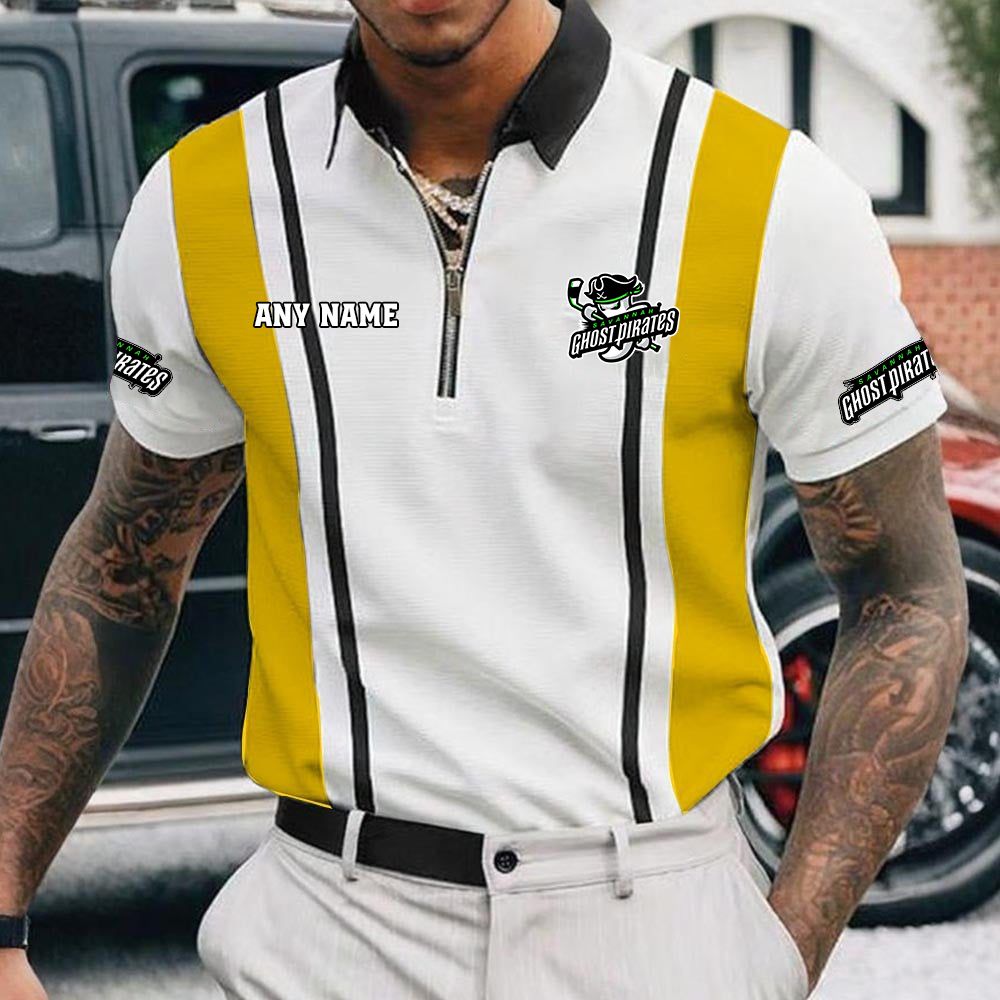 ECHL Savannah Ghost Pirates Personalized Name Multi Color Zip Polo Shirt ST2501