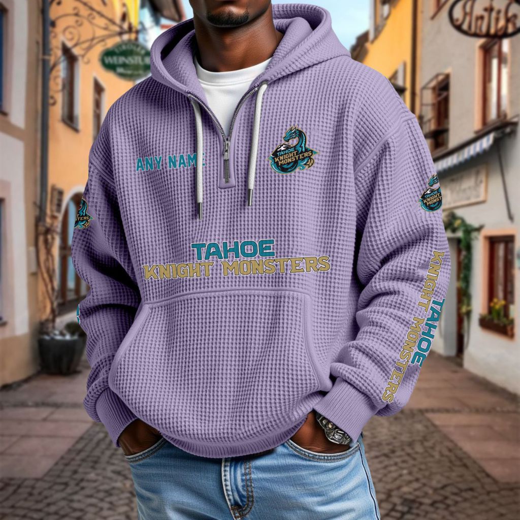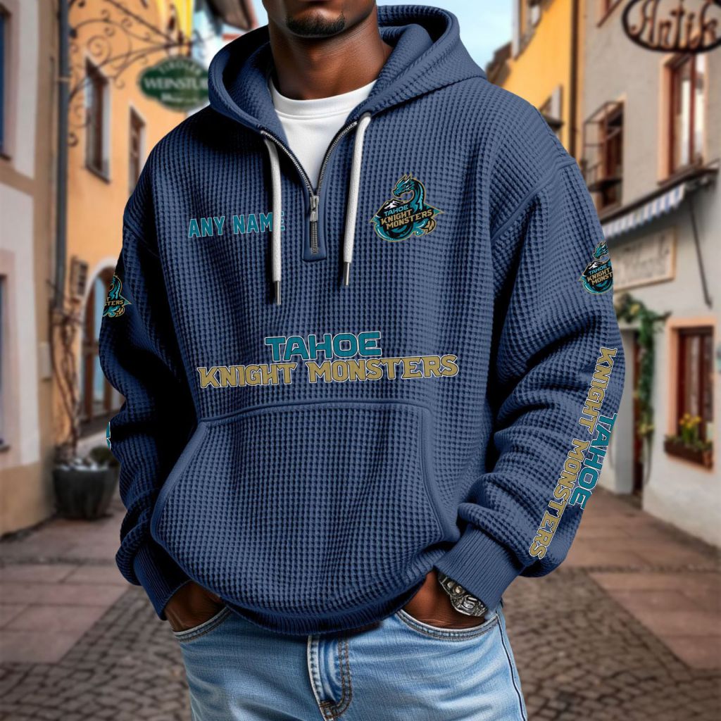 ECHL Tahoe Knight Monsters Personalized Name Waffle Quarter Zip Hoodie Design ST2501
