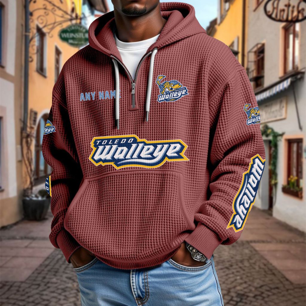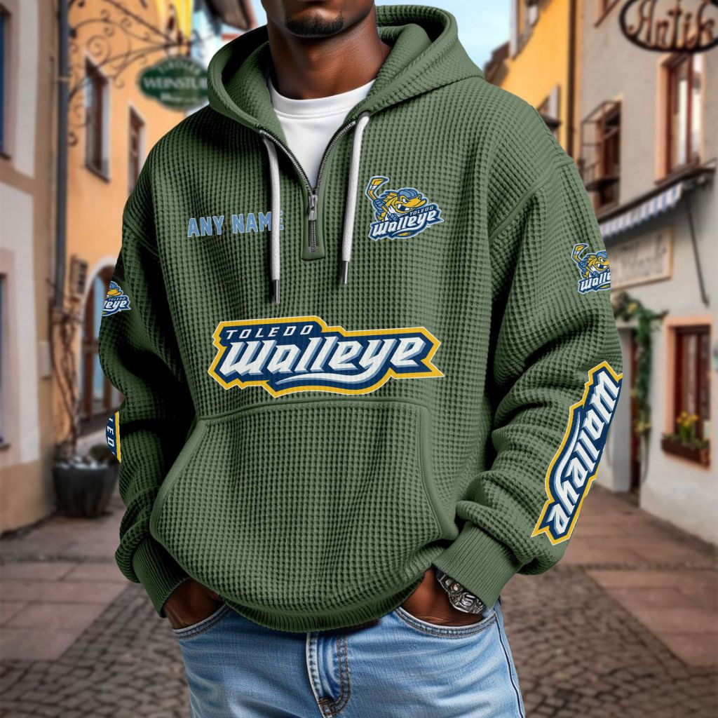 ECHL Toledo Walleye Personalized Name Waffle Quarter Zip Hoodie Design ST2501