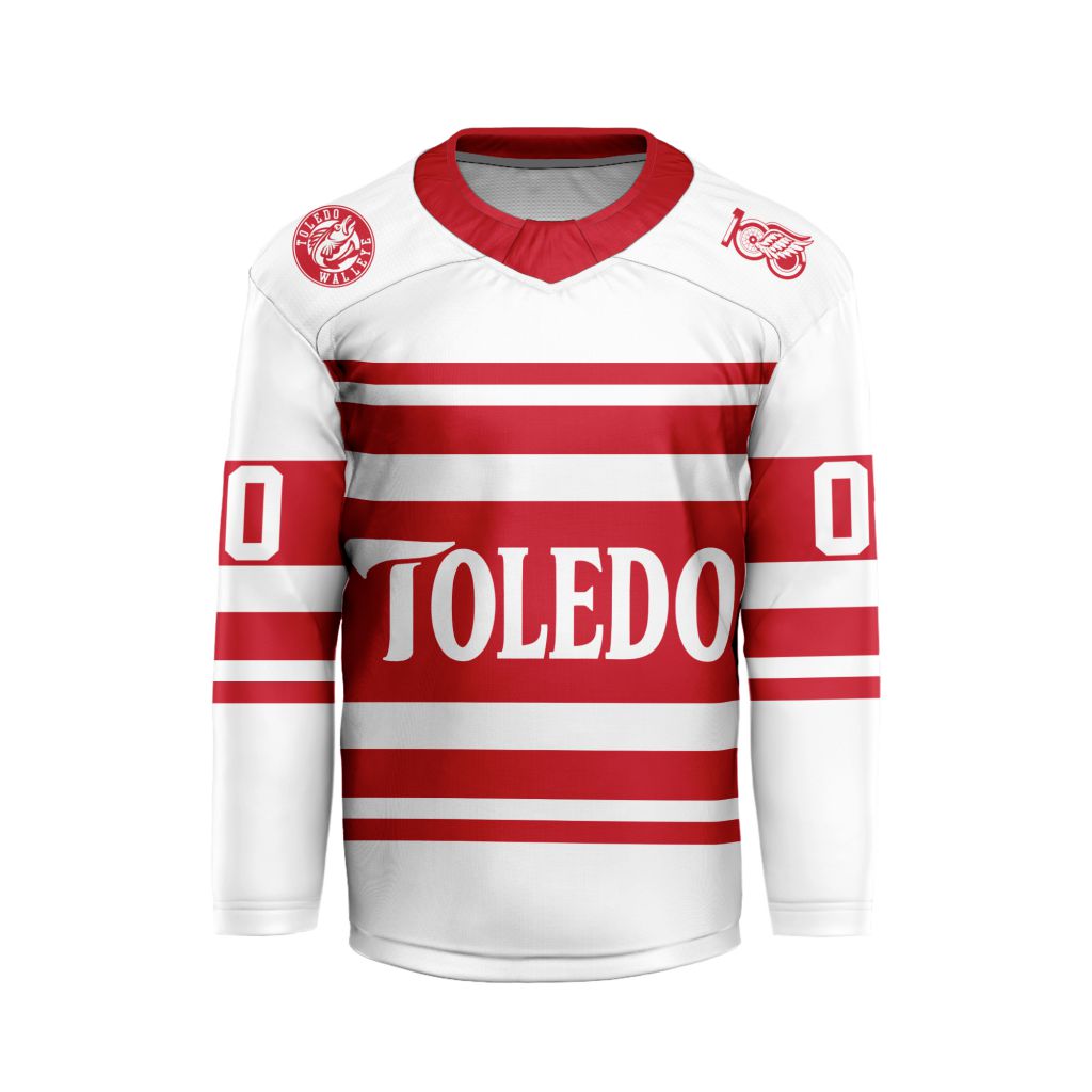 ECHL Toledo Walleye Special Red Wings Night V-shaped Hockey Jersey Design