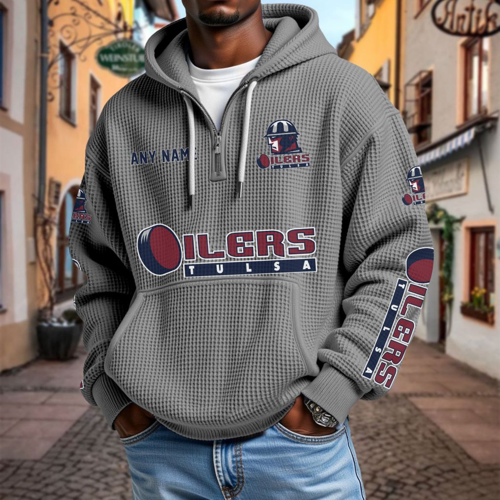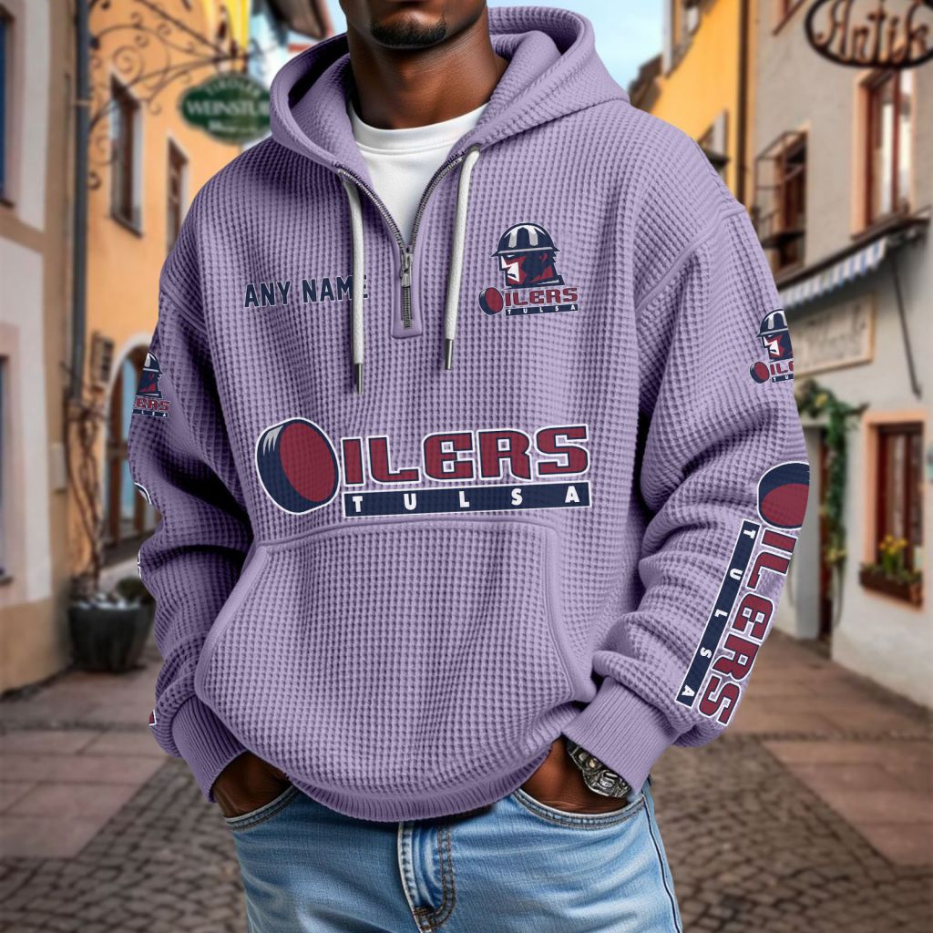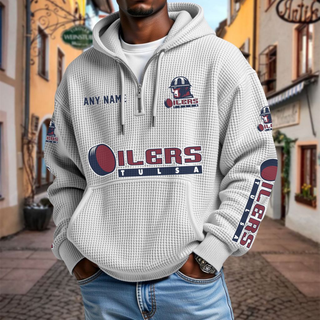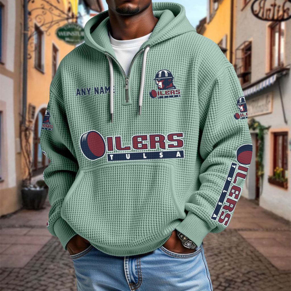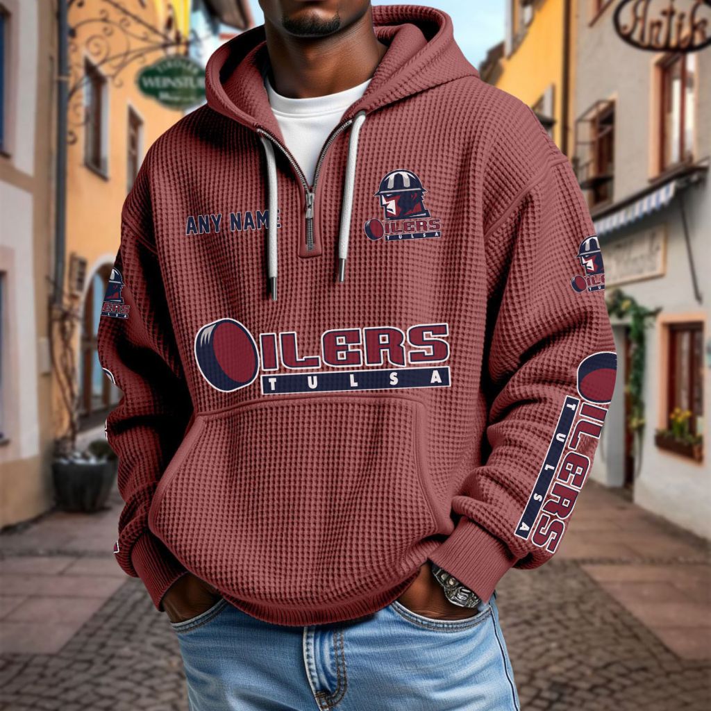 ECHL Tulsa Oilers Personalized Name Waffle Quarter Zip Hoodie Design ST2501