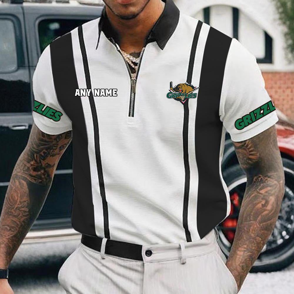 ECHL Utah Grizzlies Personalized Name Multi Color Zip Polo Shirt ST2501
