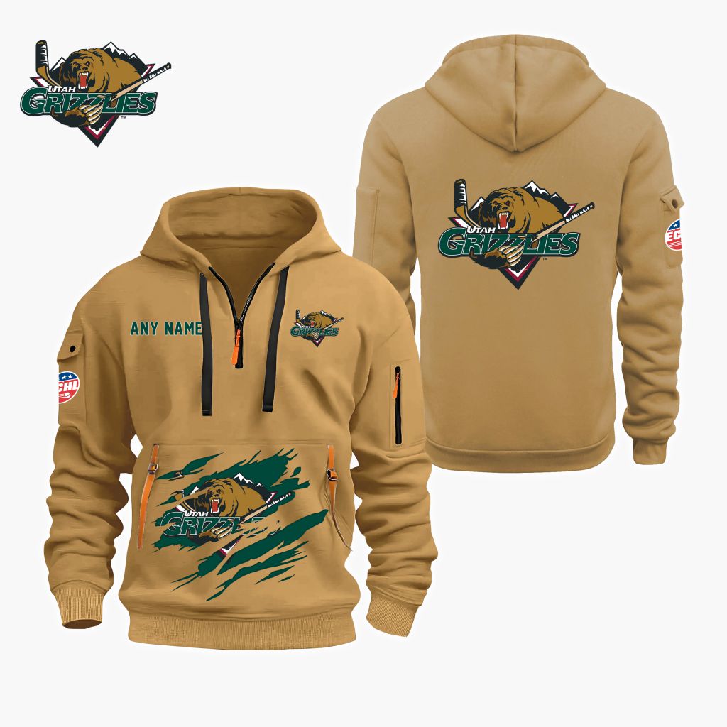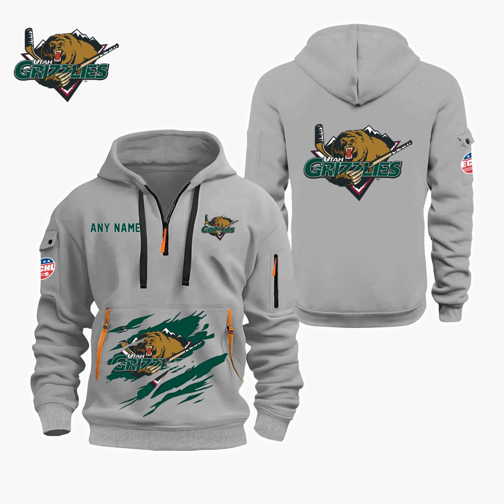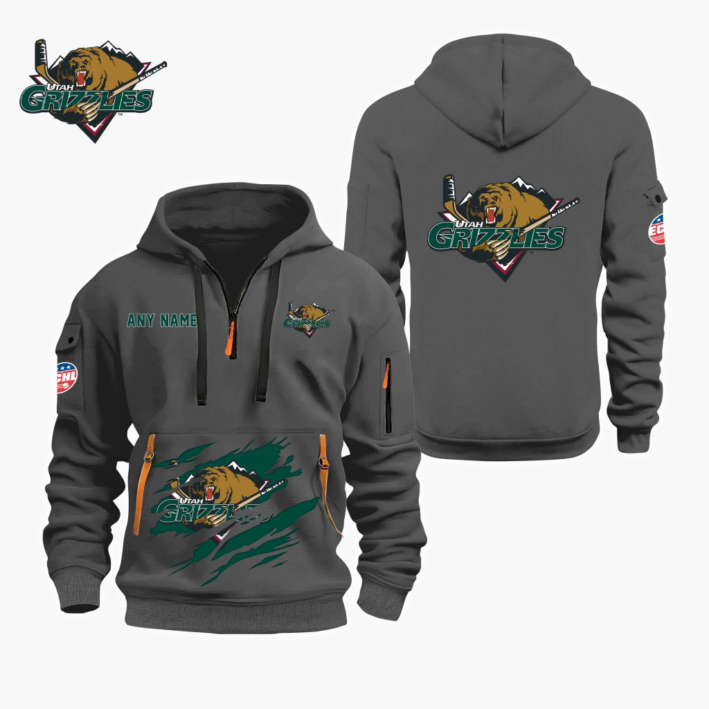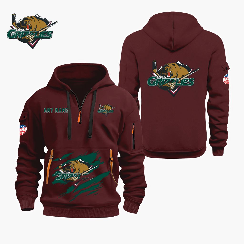 ECHL Utah Grizzlies Personalized Name Quarter Zip Hoodie ST2501