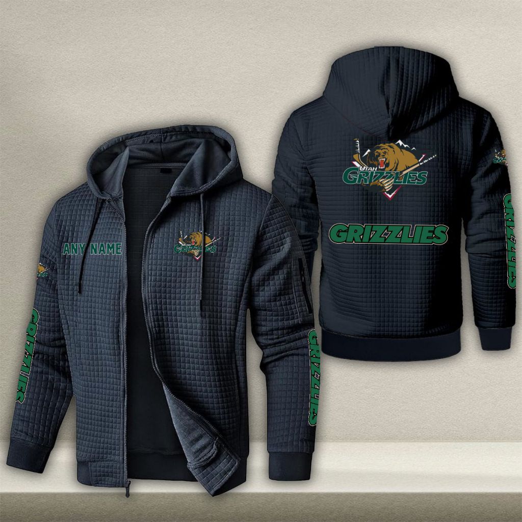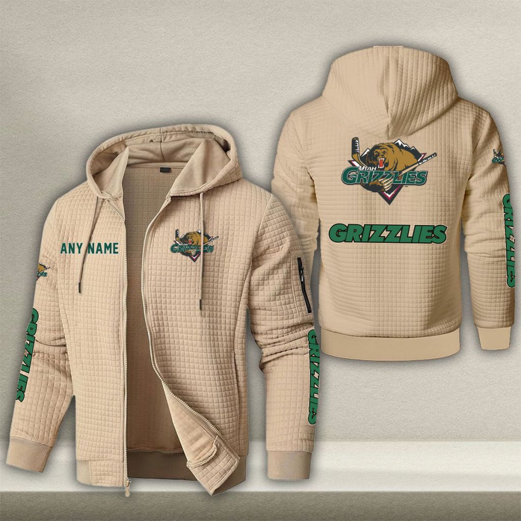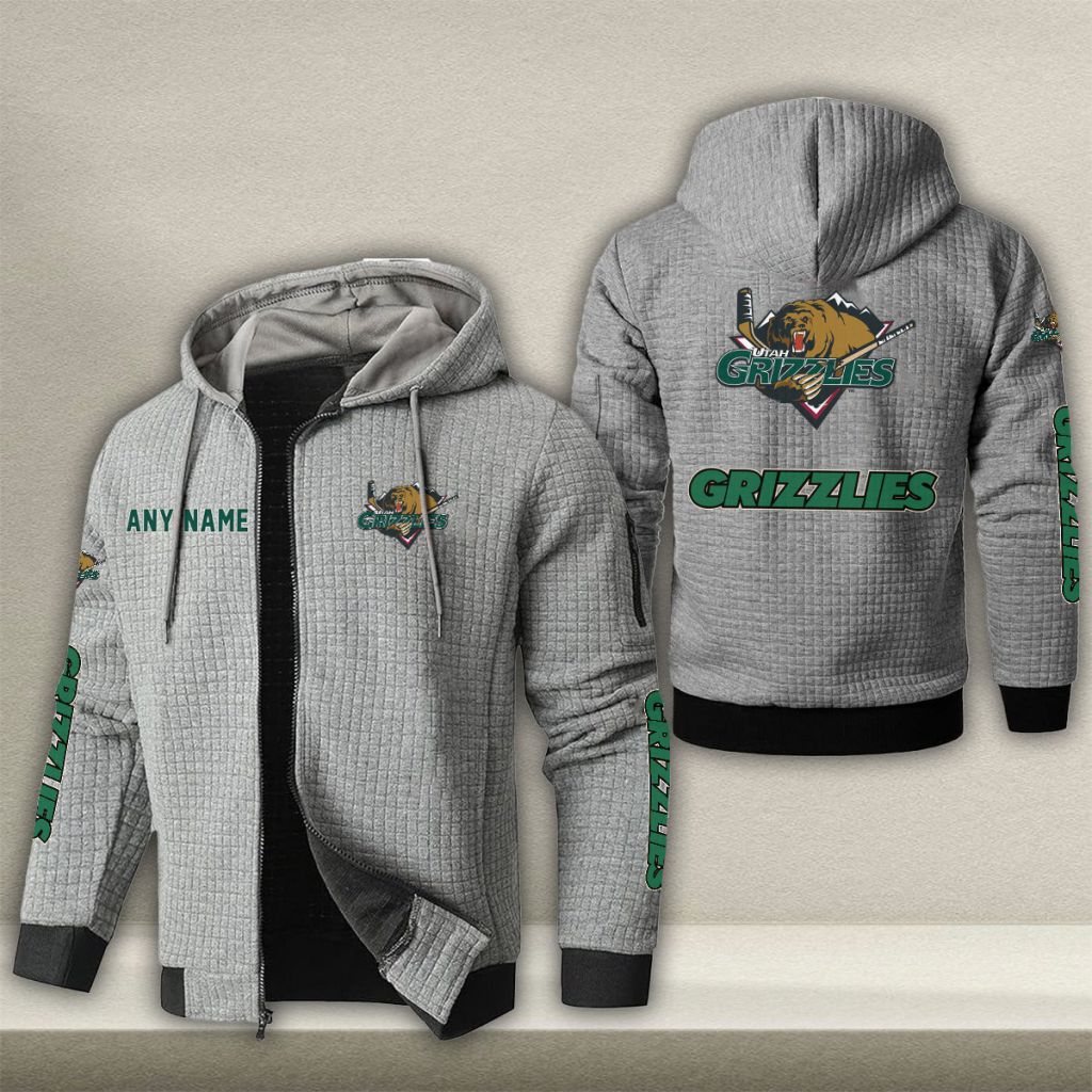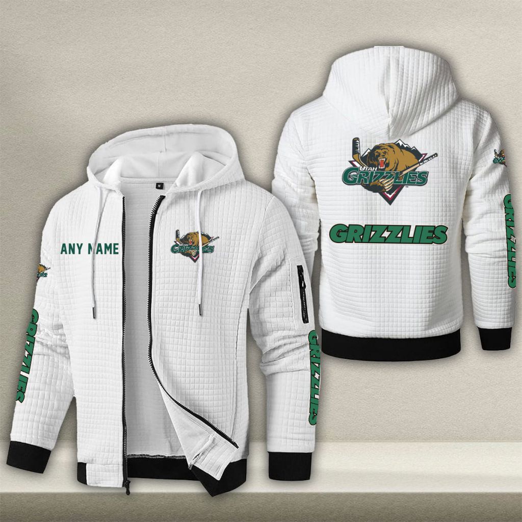 ECHL Utah Grizzlies Personalized Name Waffle Zip Hoodie Design ST2502