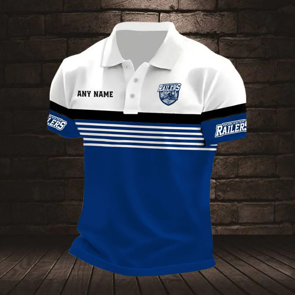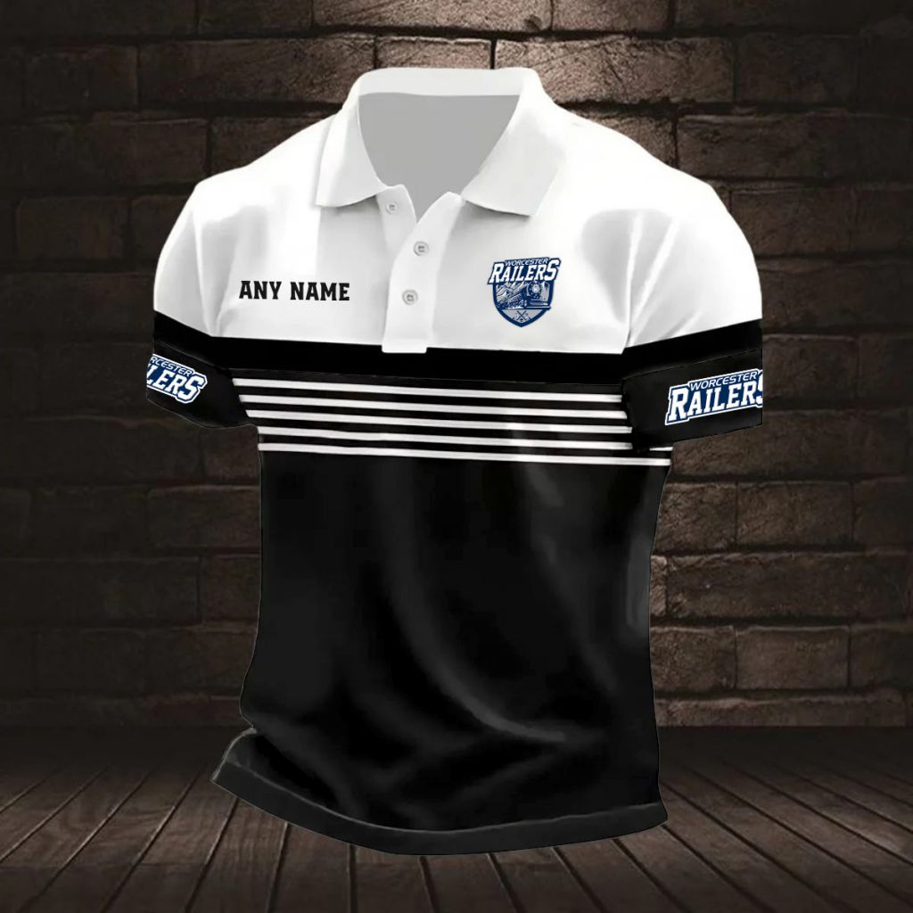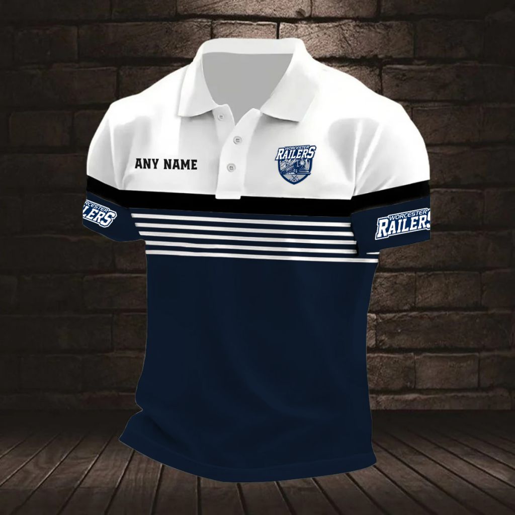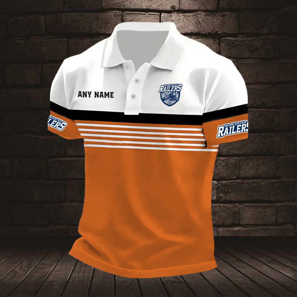 ECHL Worcester Railers Personalized Name Stripped Multi Color Polo Design ST2501