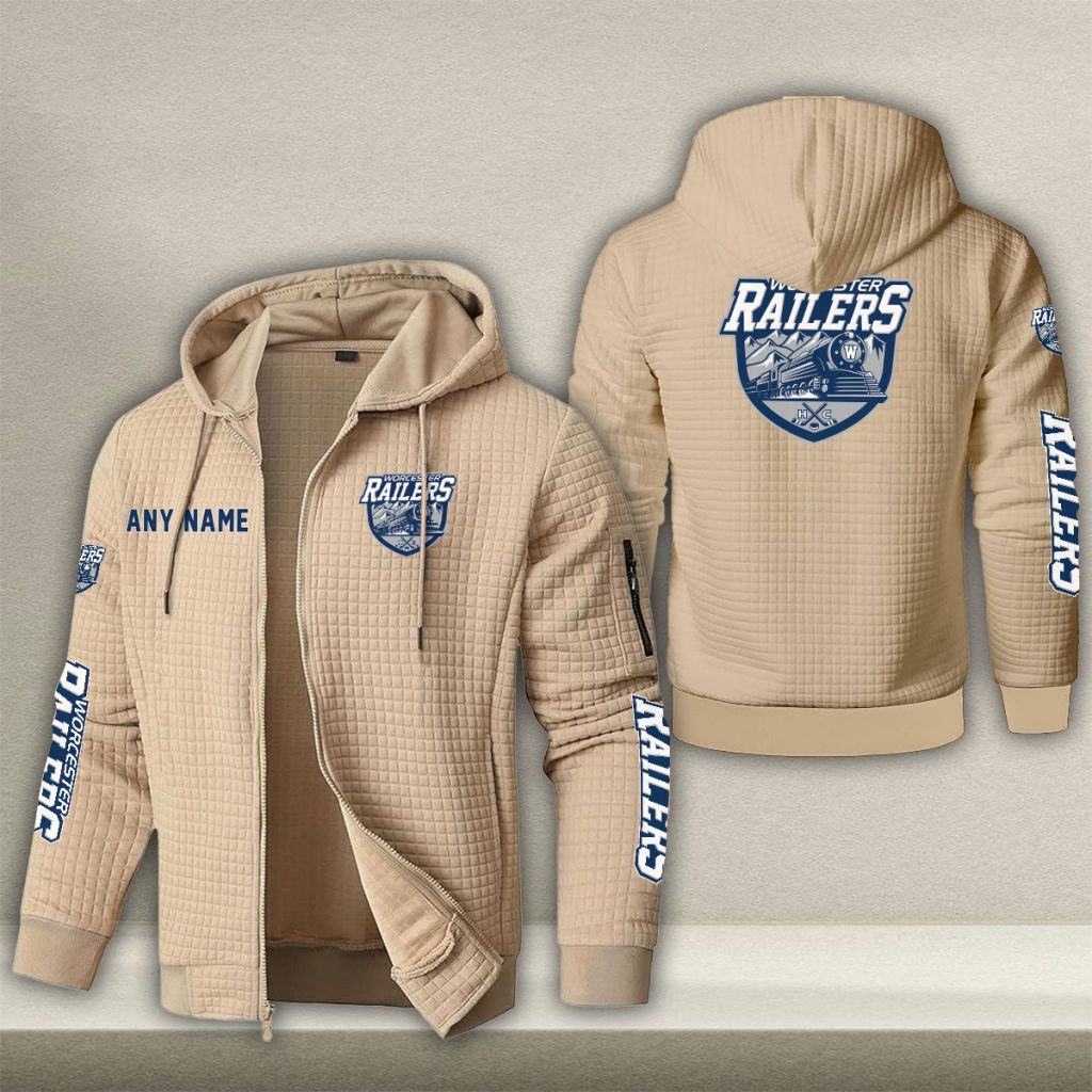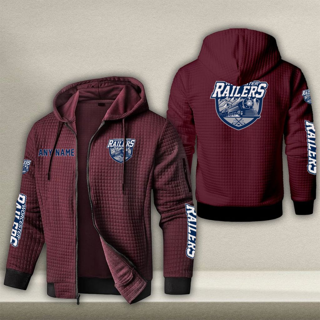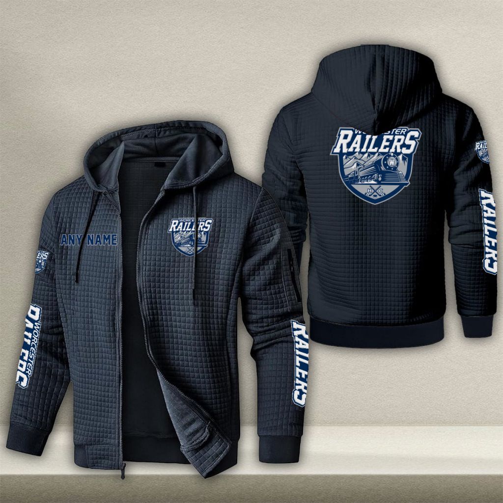 ECHL Worcester Railers Personalized Name Waffle Zip Hoodie Design ST2502