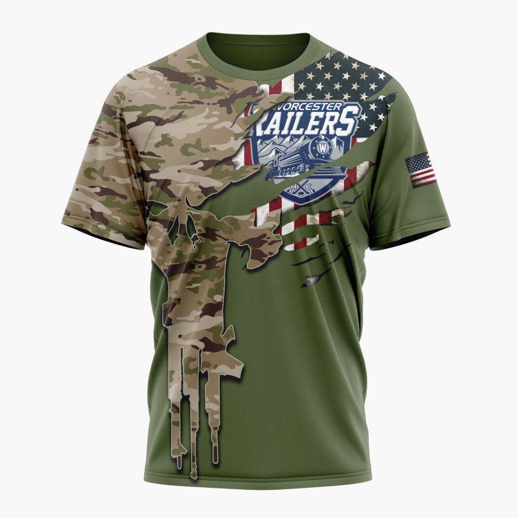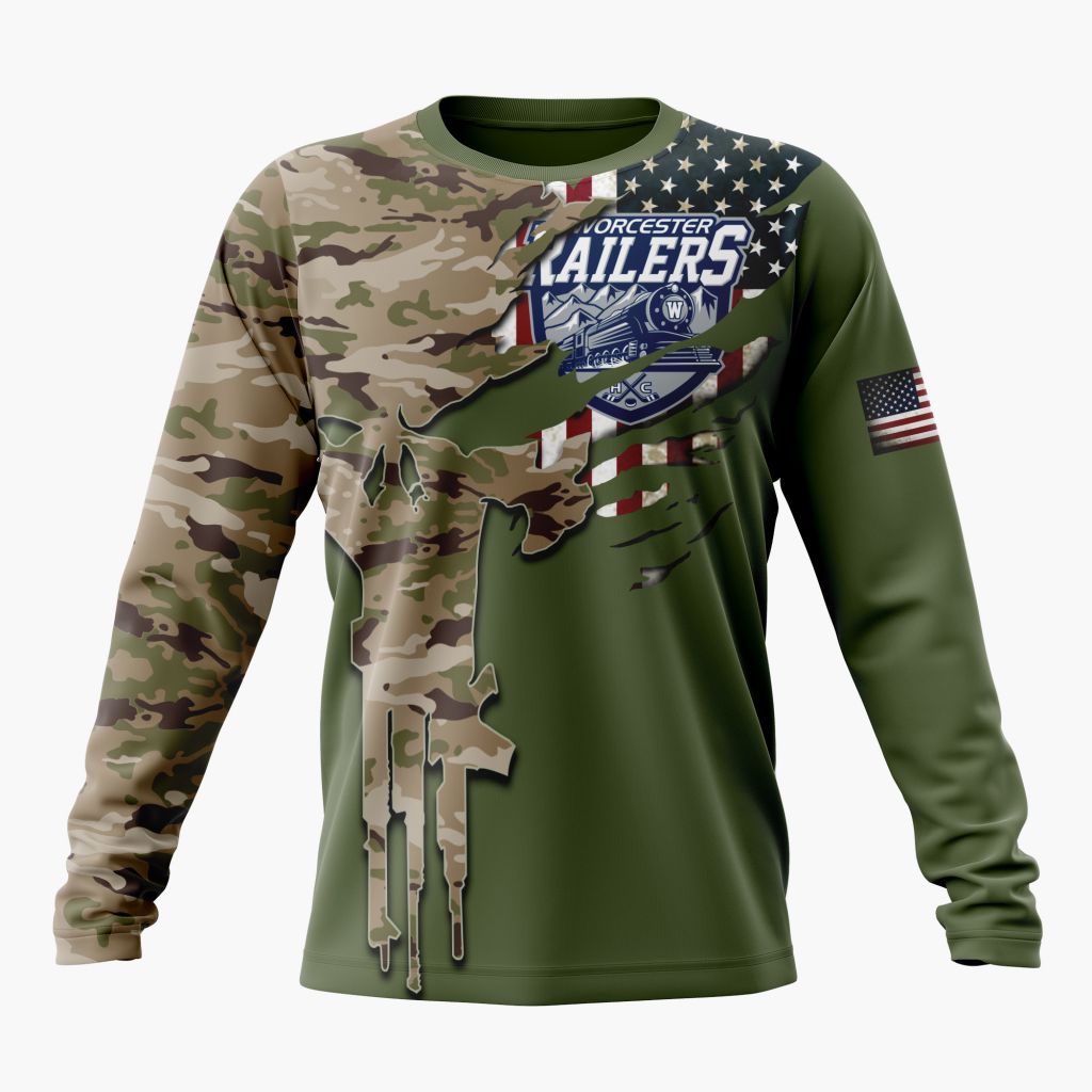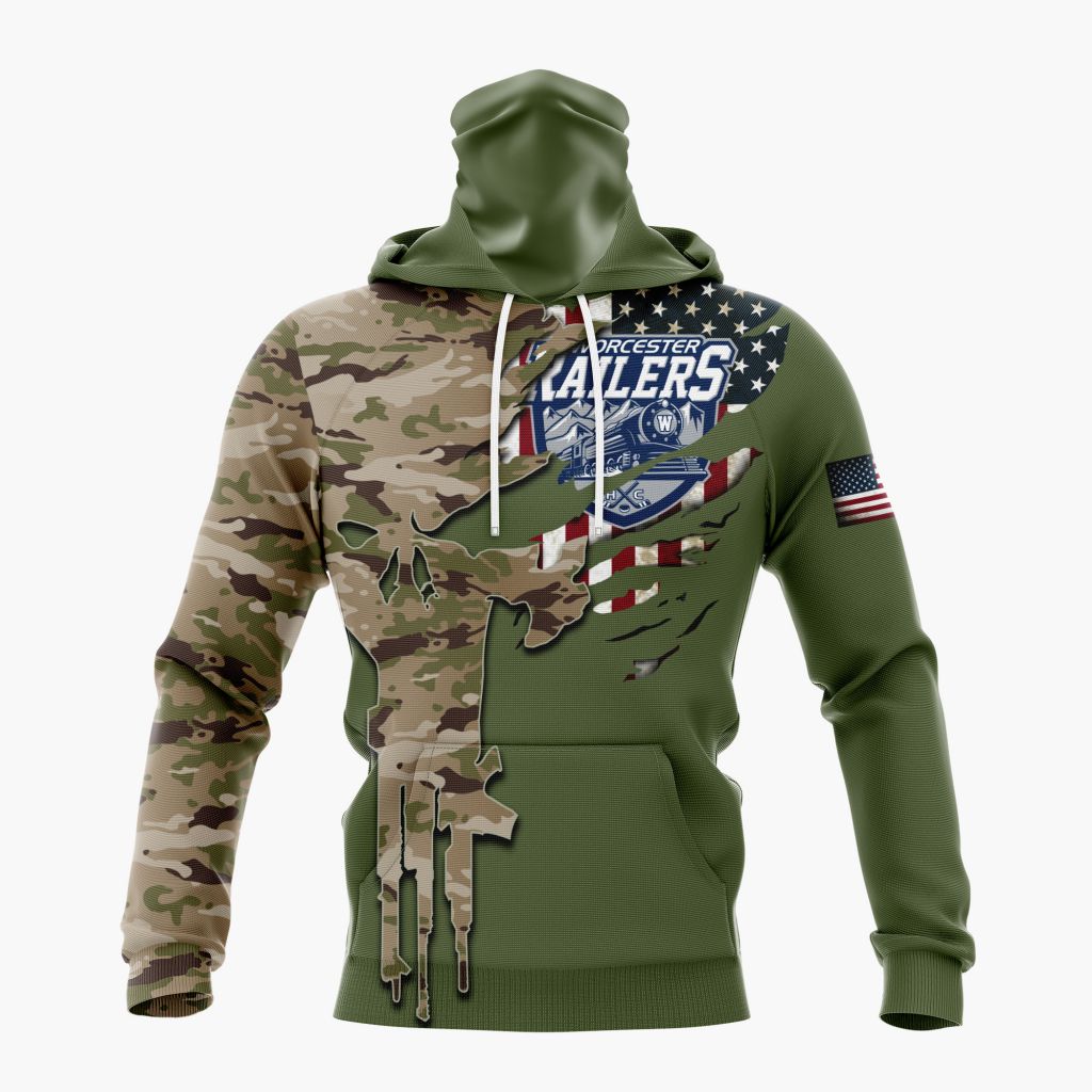 ECHL Worcester Railers Special Skull Camo Veteran Design ST2503