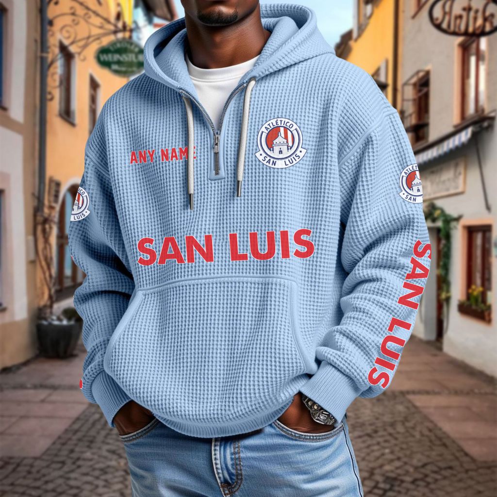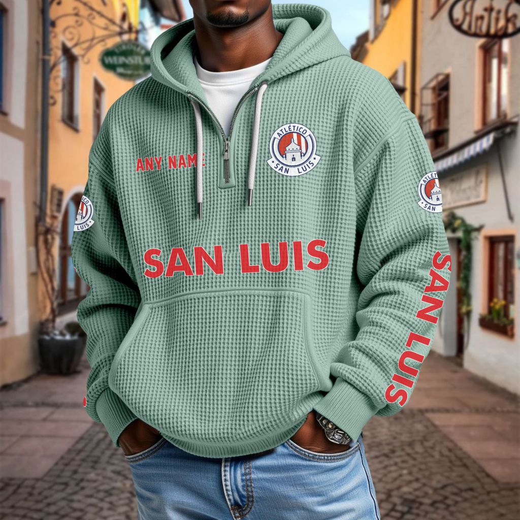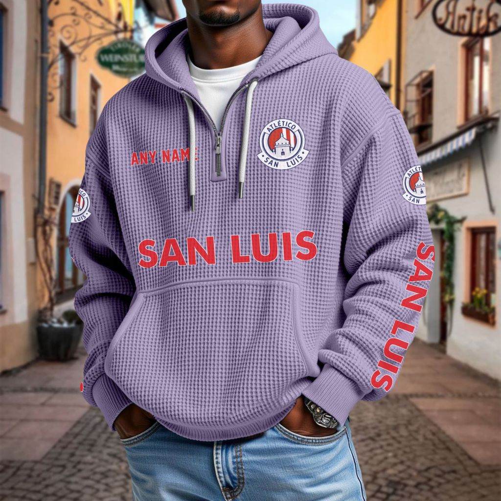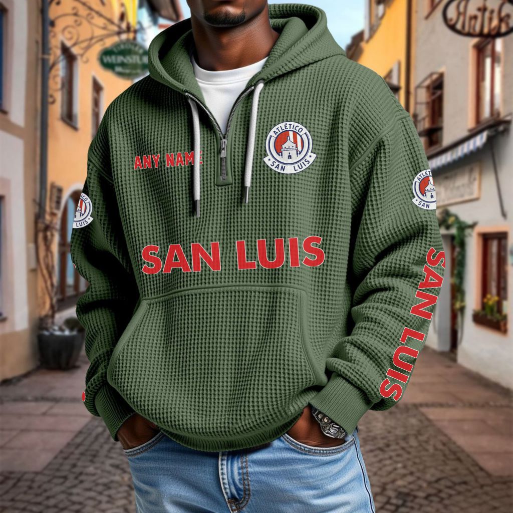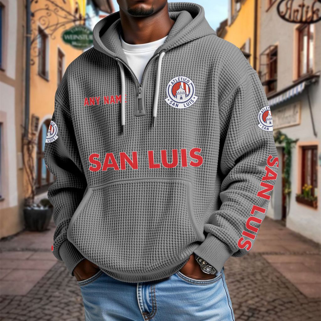 - Stay effortlessly stylish and comfortable with this premium waffle-textured hoodie. Designed with a relaxed fit and soft, breathable fabric, it’s perfect for layering or wearing on its own. The half-zip front and adjustable drawstring hood add modern versatility, while the kangaroo pocket keeps your hands warm and essentials close.
