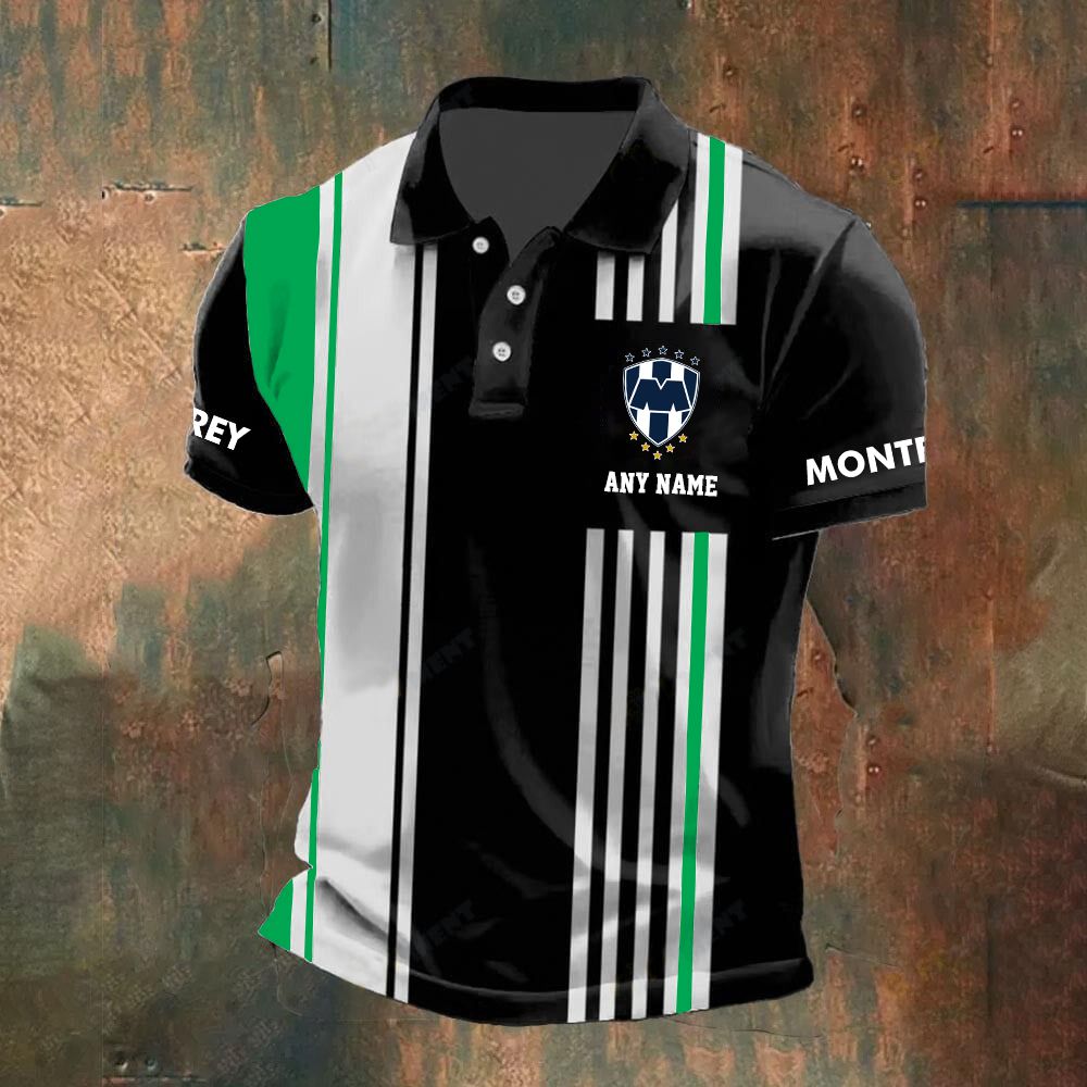 LIGA MX C.F. Monterrey Personalized Name Stripped Polo Design ST2502