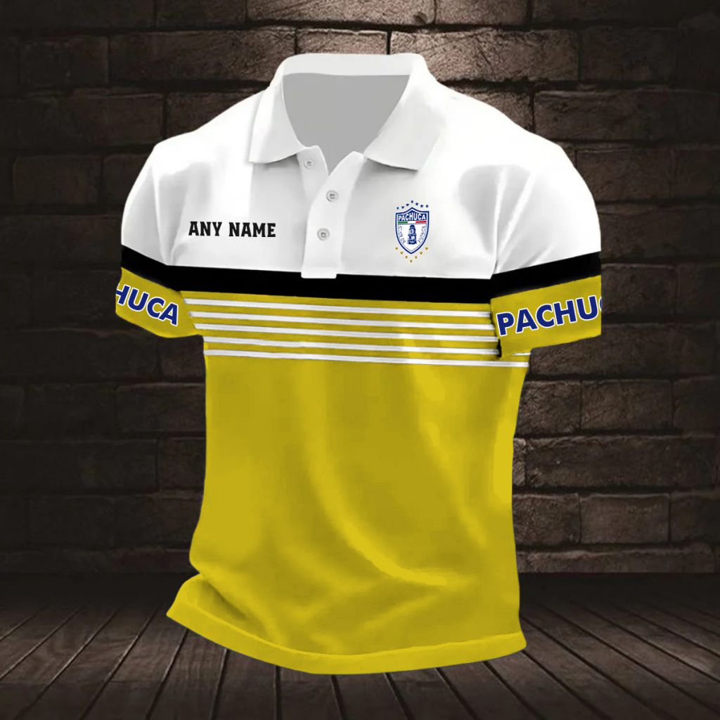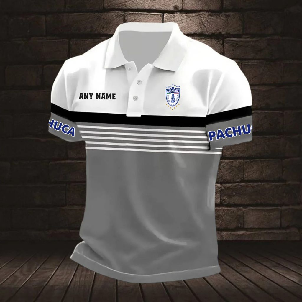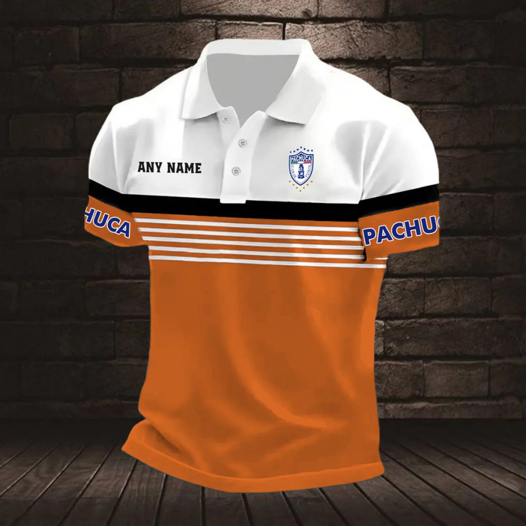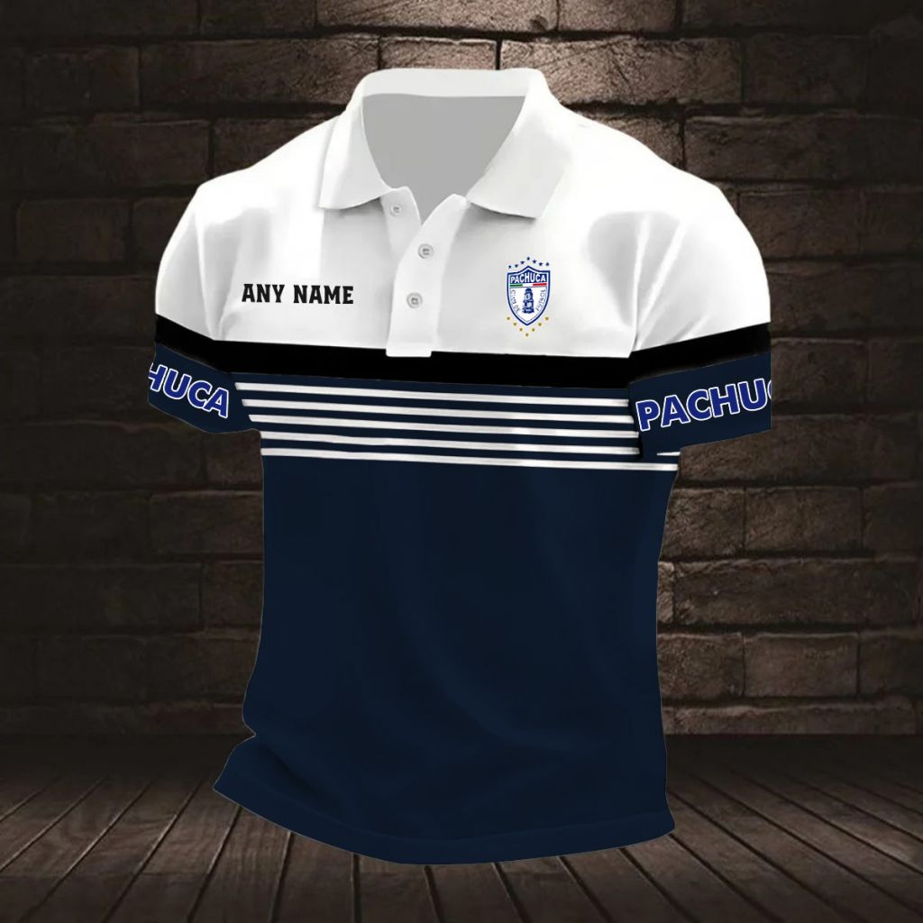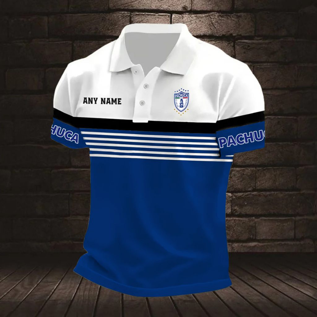 LIGA MX C.F. Pachuca Personalized Name Stripped Multi Color Polo Design ST2501
