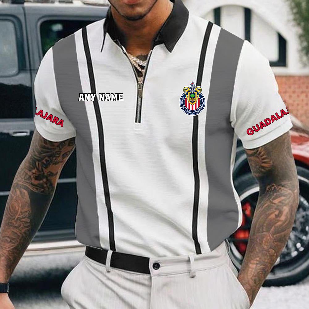 LIGA MX Chivas Guadalajara Personalized Name Multi Color Zipper Polo Design ST2501