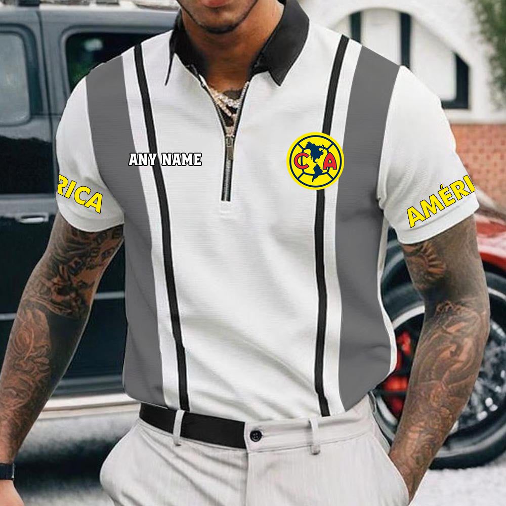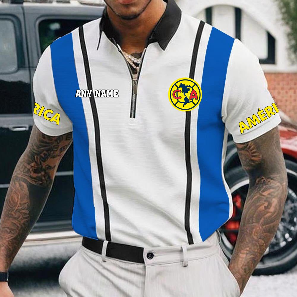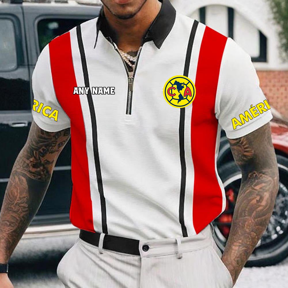 LIGA MX Club America Personalized Name Multi Color Zipper Polo Design ST2501
