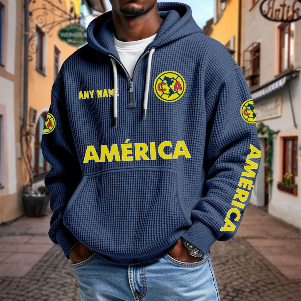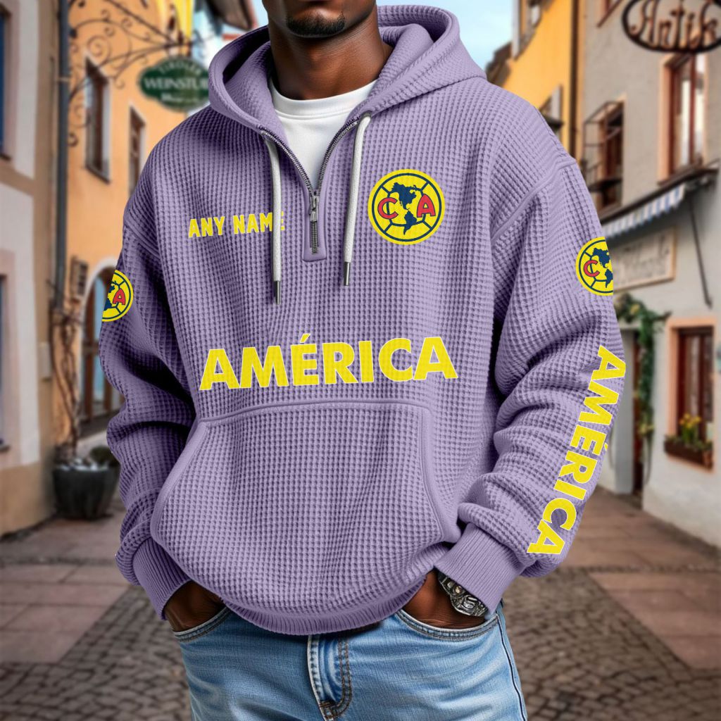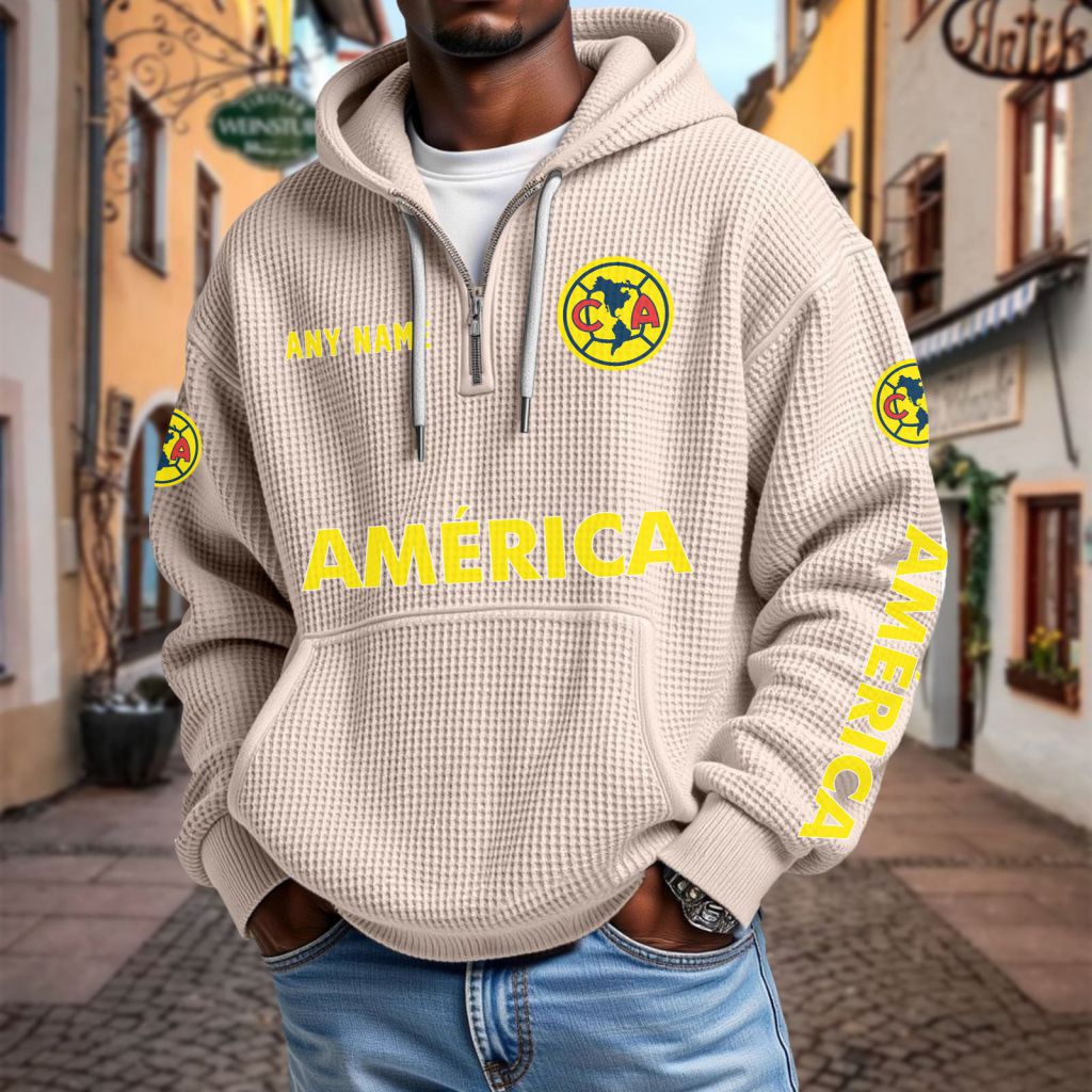 - Stay effortlessly stylish and comfortable with this premium waffle-textured hoodie. Designed with a relaxed fit and soft, breathable fabric, it’s perfect for layering or wearing on its own. The half-zip front and adjustable drawstring hood add modern versatility, while the kangaroo pocket keeps your hands warm and essentials close.