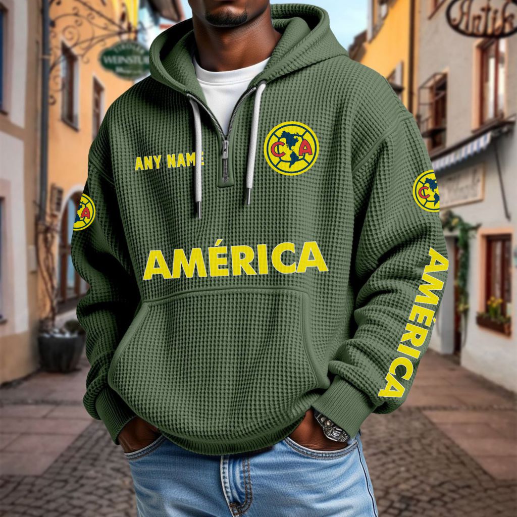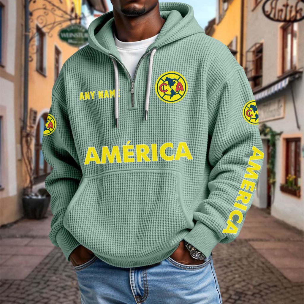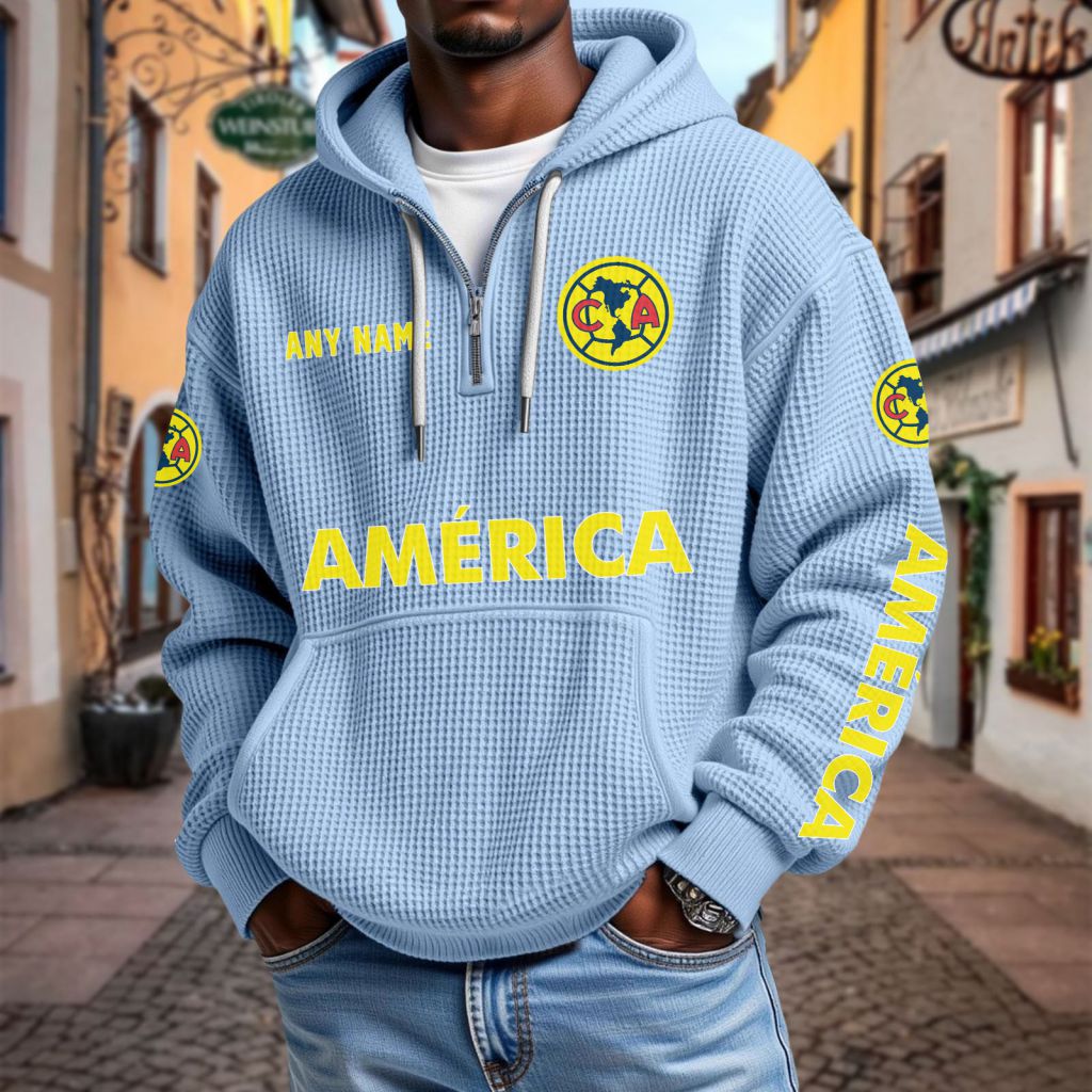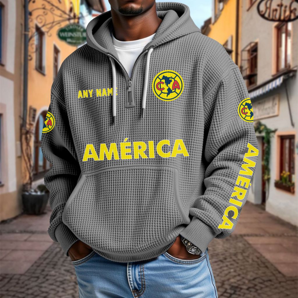 - Stay effortlessly stylish and comfortable with this premium waffle-textured hoodie. Designed with a relaxed fit and soft, breathable fabric, it’s perfect for layering or wearing on its own. The half-zip front and adjustable drawstring hood add modern versatility, while the kangaroo pocket keeps your hands warm and essentials close.