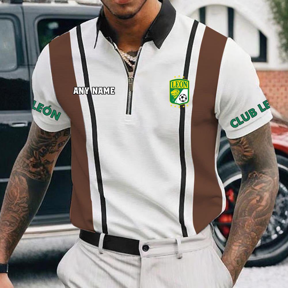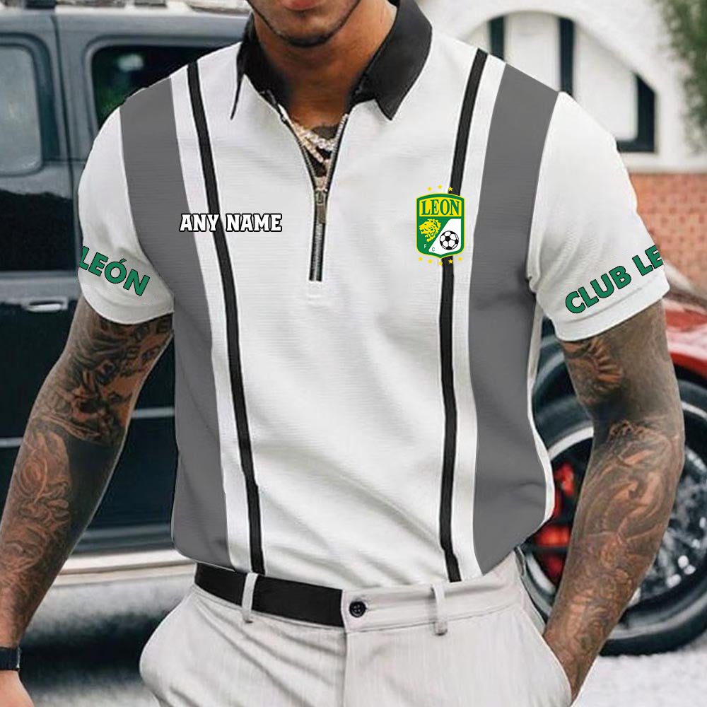LIGA MX Club Leon Personalized Name Multi Color Zipper Polo Design ST2501