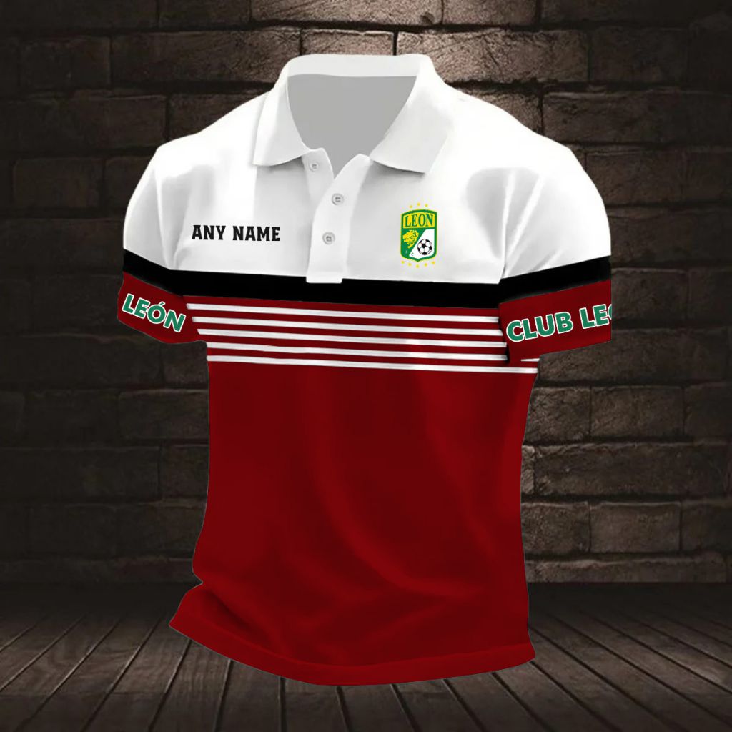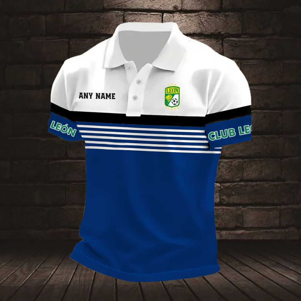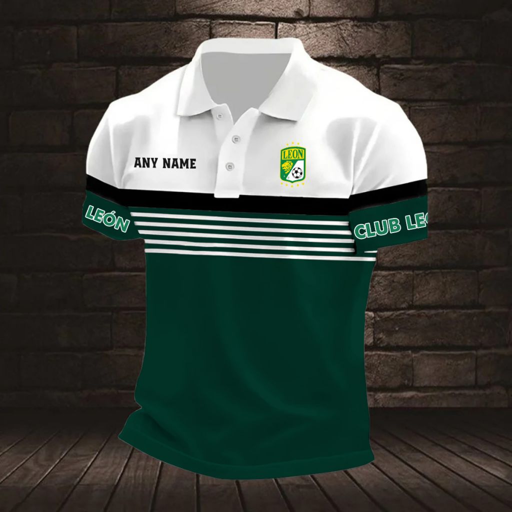 LIGA MX Club Leon Personalized Name Stripped Multi Color Polo Design ST2501