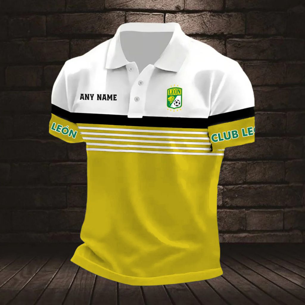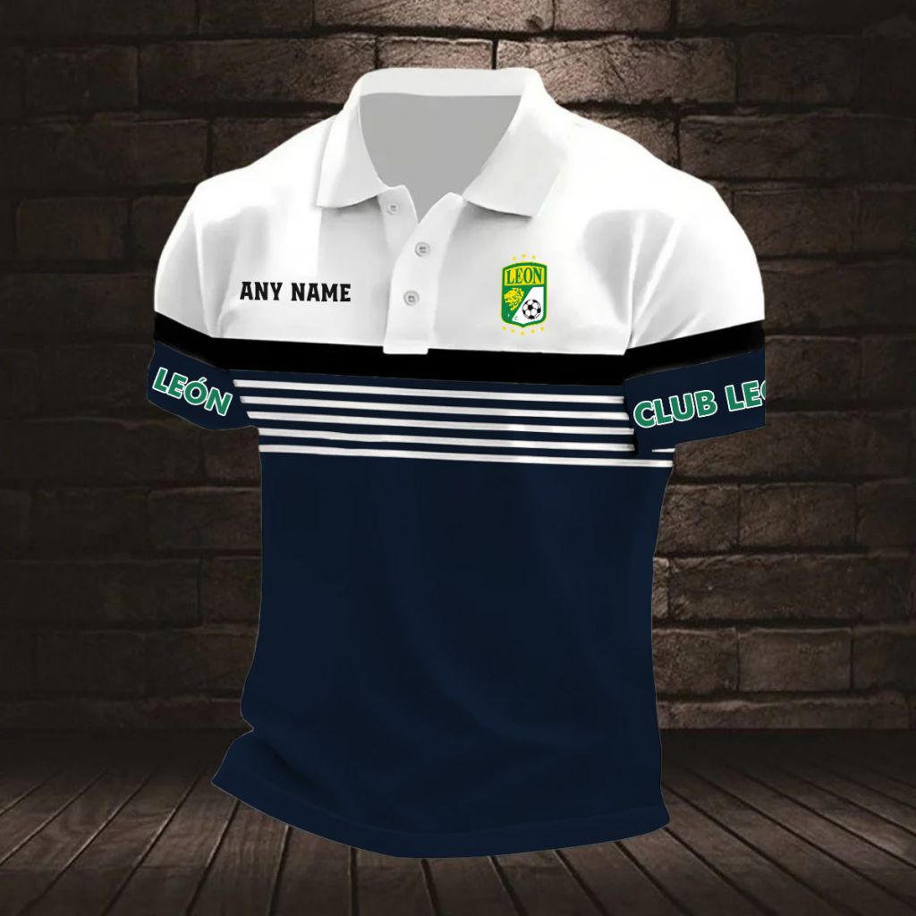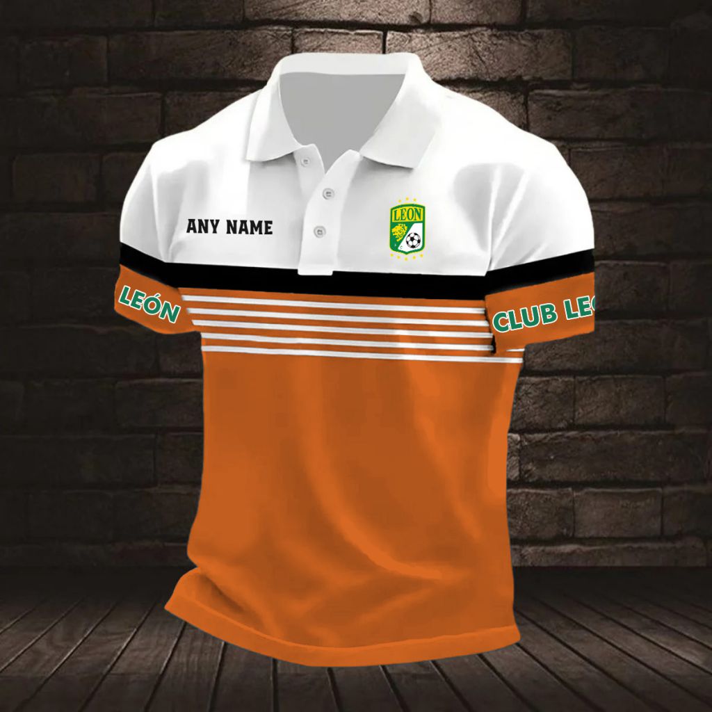 LIGA MX Club Leon Personalized Name Stripped Multi Color Polo Design ST2501