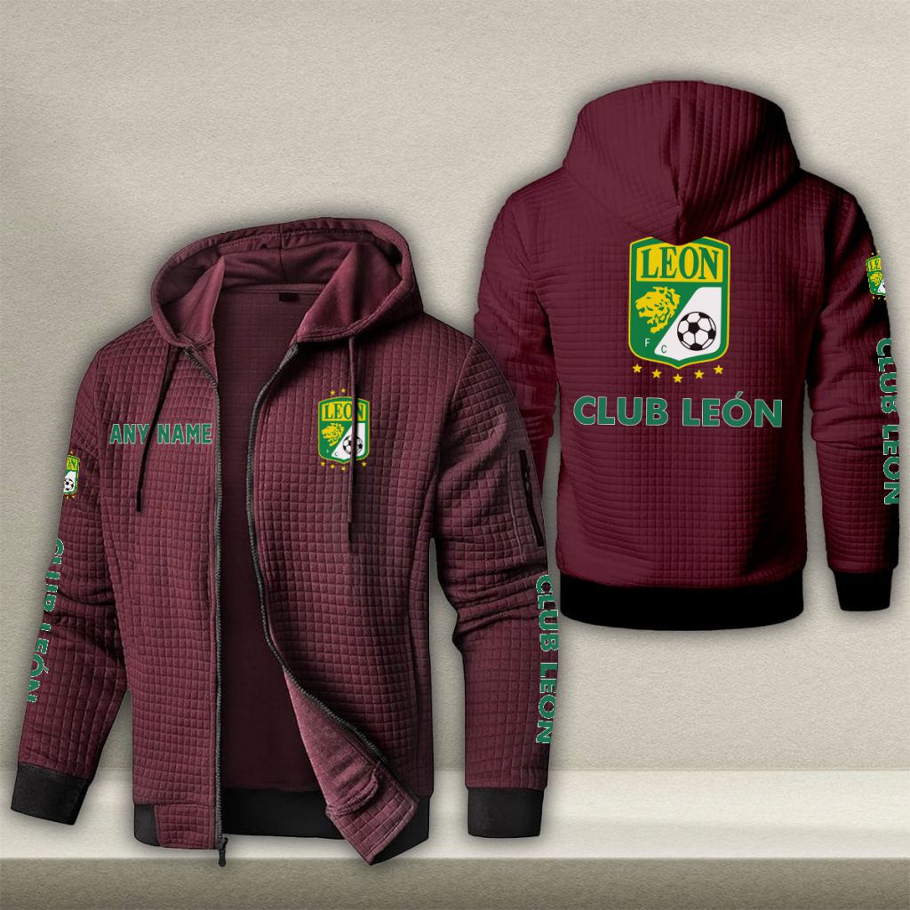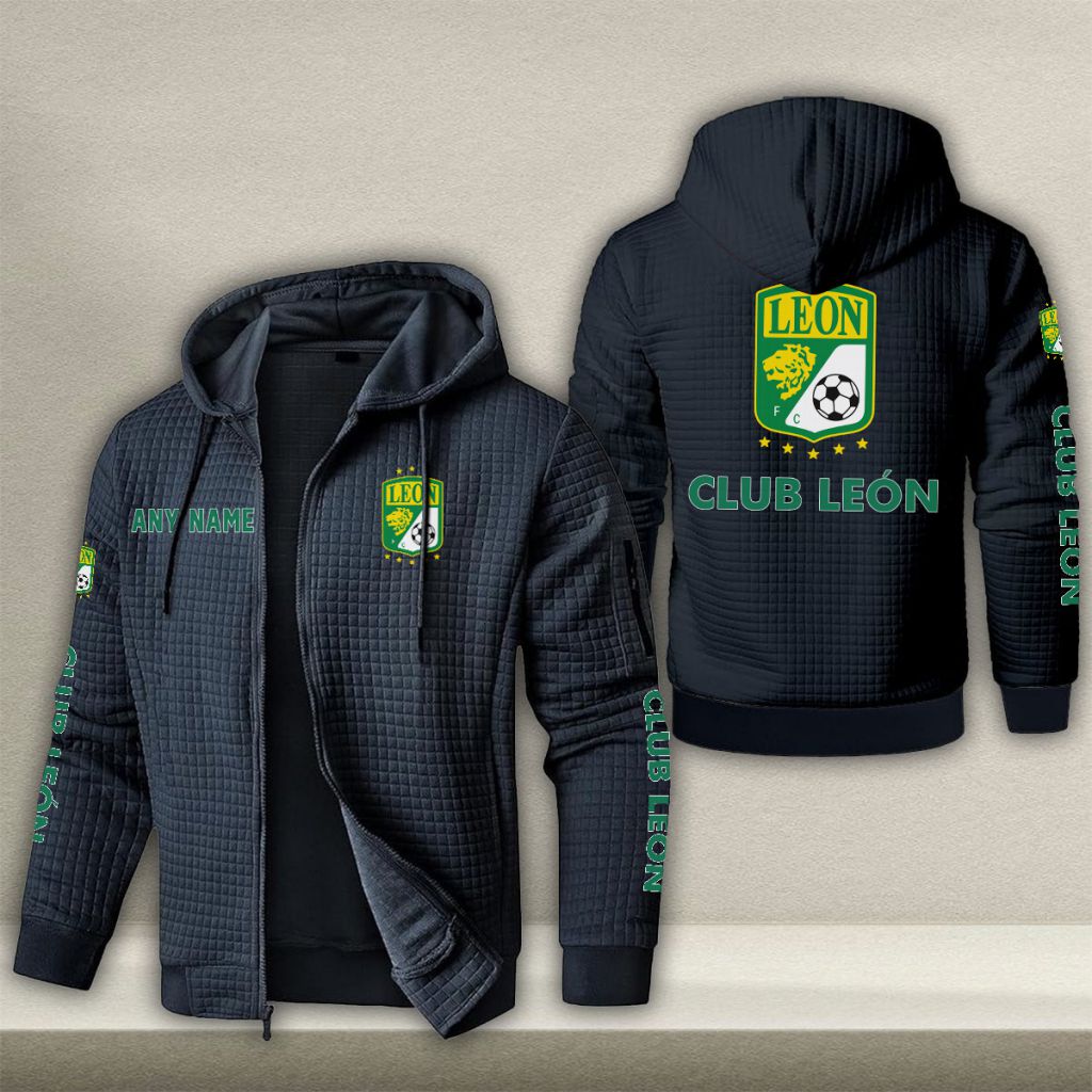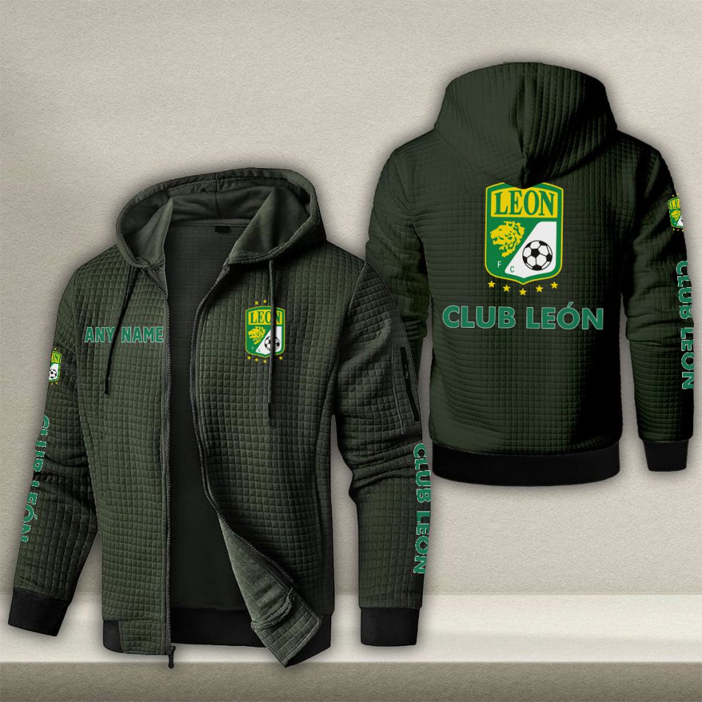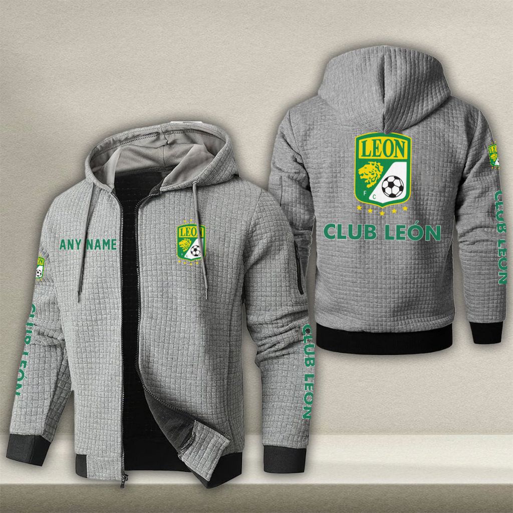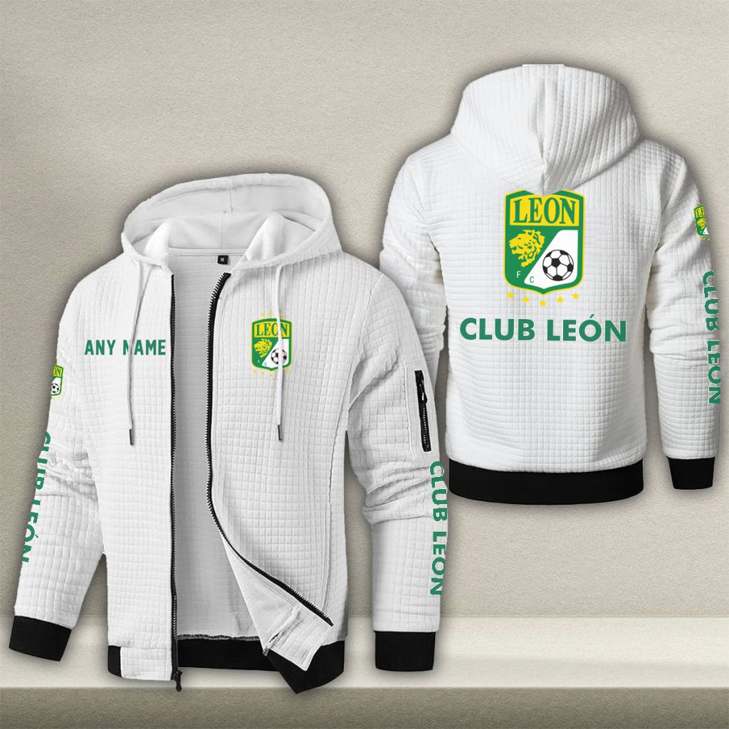 LIGA MX Club Leon Personalized Name Waffle Zip Hoodie Design ST2502