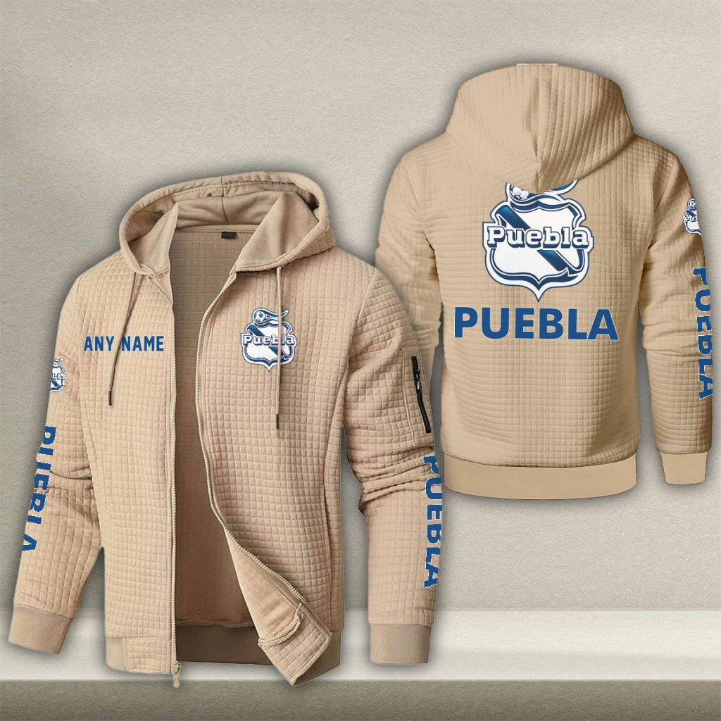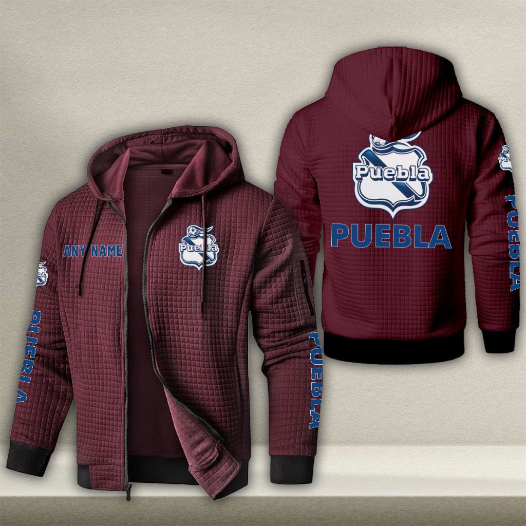 LIGA MX Club Puebla Personalized Name Waffle Zip Hoodie Design ST2502