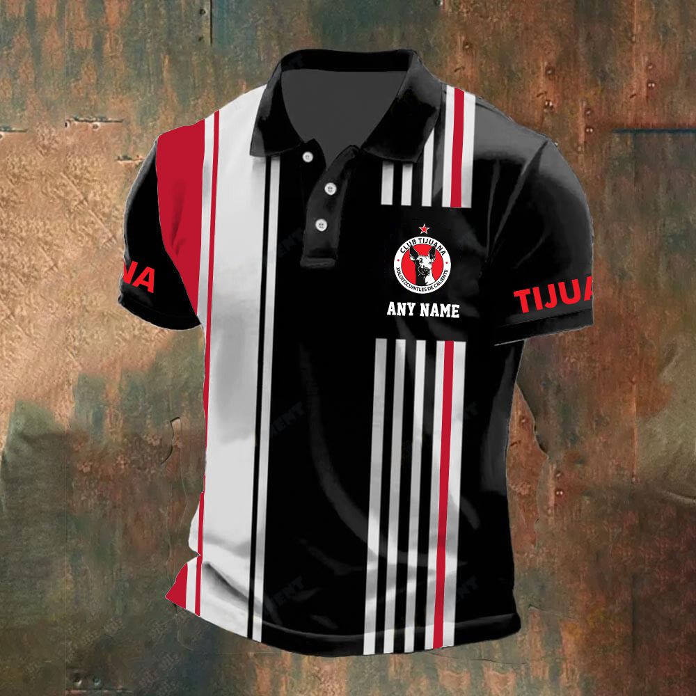LIGA MX Club Tijuana Personalized Name Stripped Polo Design ST2502