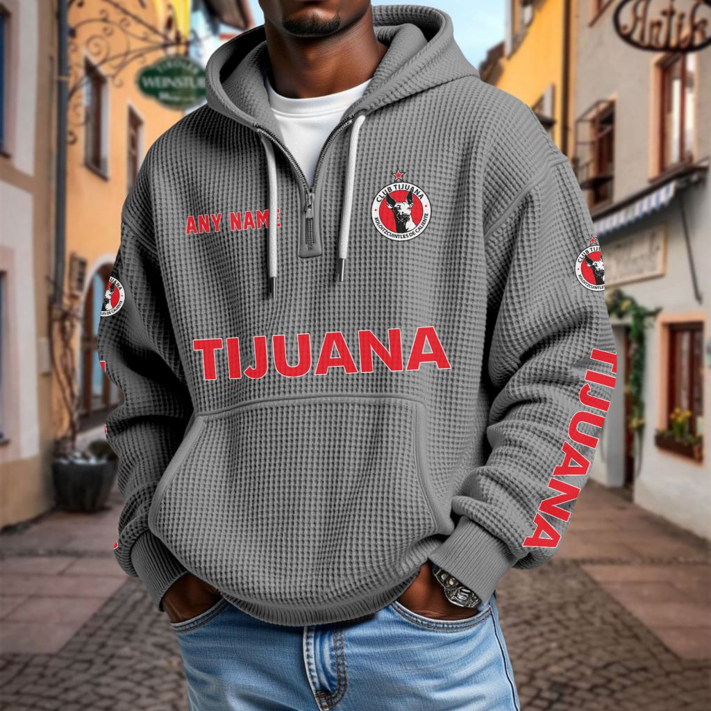 LIGA MX Club Tijuana Personalized Name Waffle Quarter Zip Hoodie Design ST2501