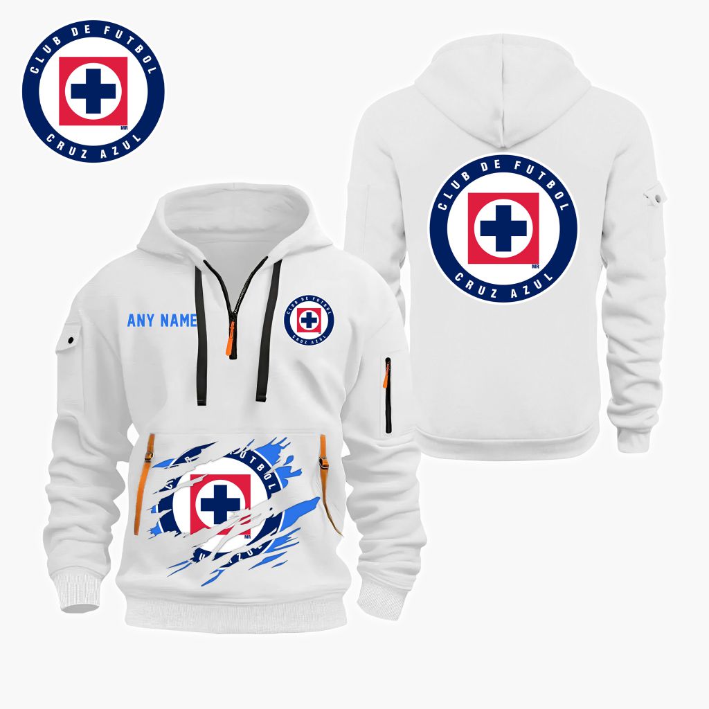 LIGA MX Cruz Azul Personalized Name Quarter Zip Hoodie ST2501
