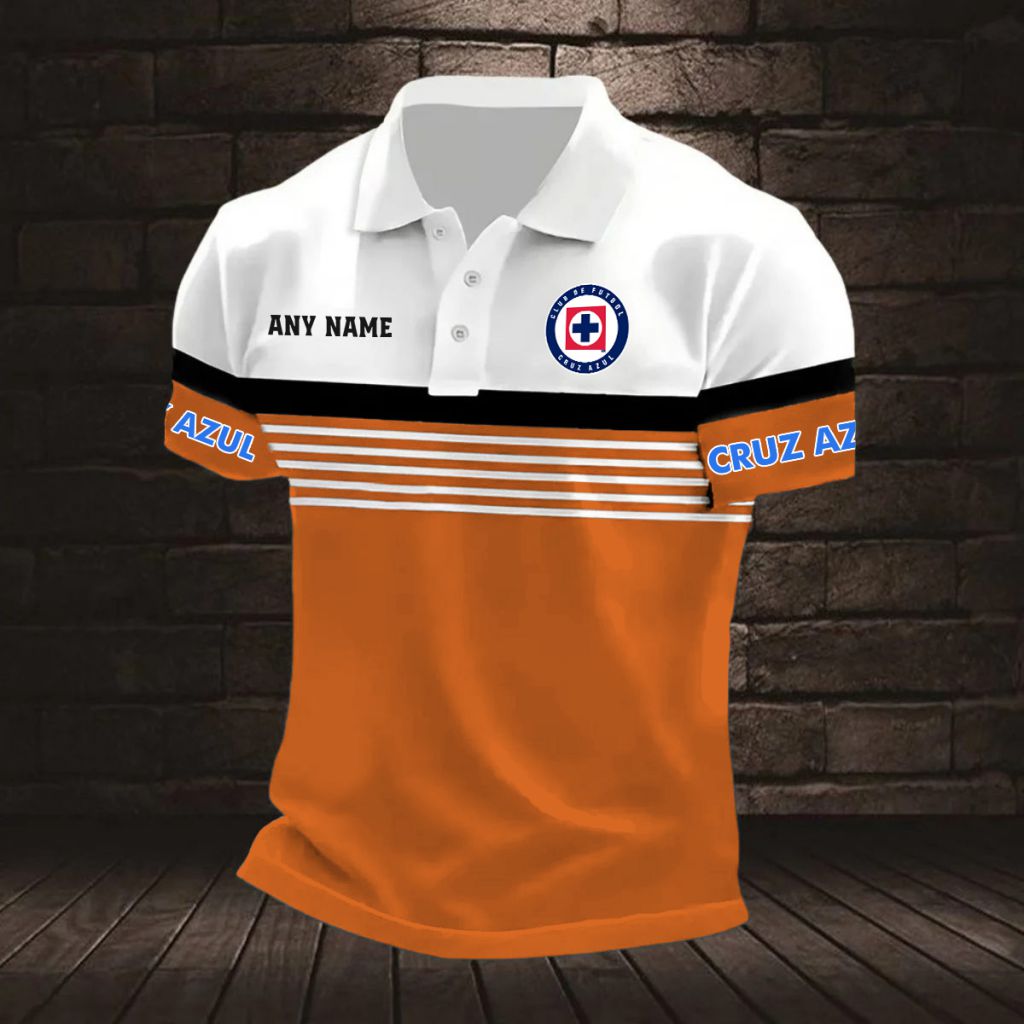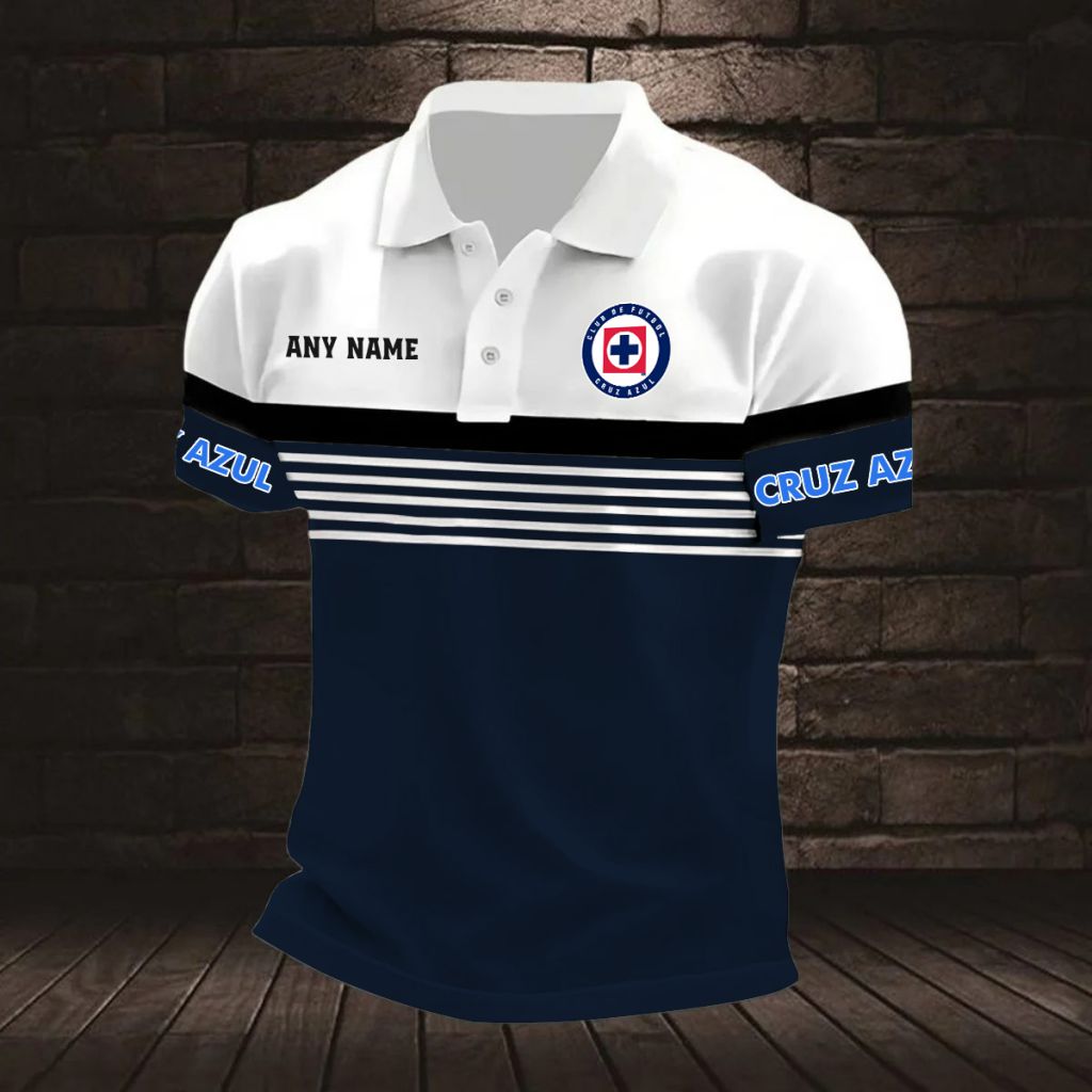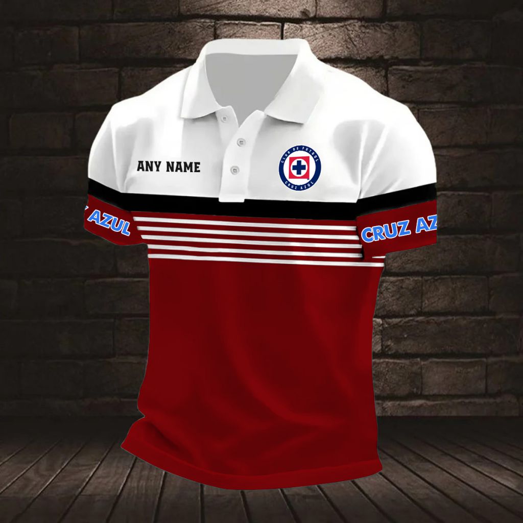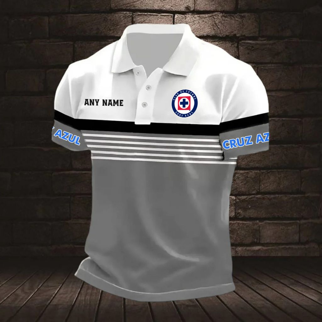 LIGA MX Cruz Azul Personalized Name Stripped Multi Color Polo Design ST2501