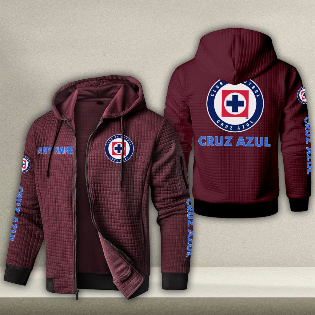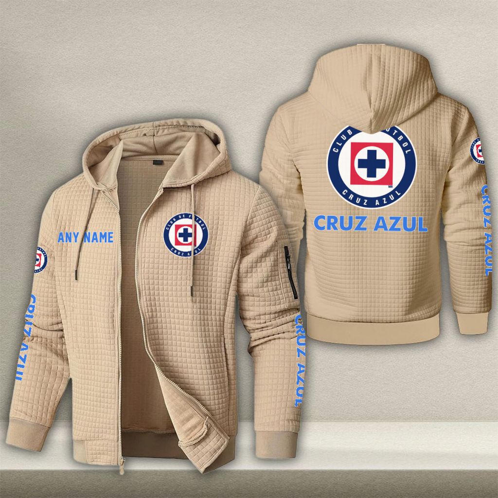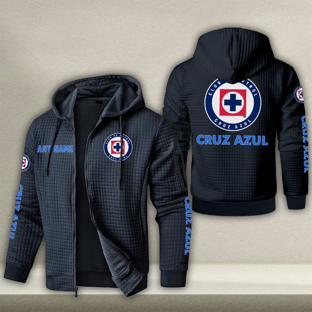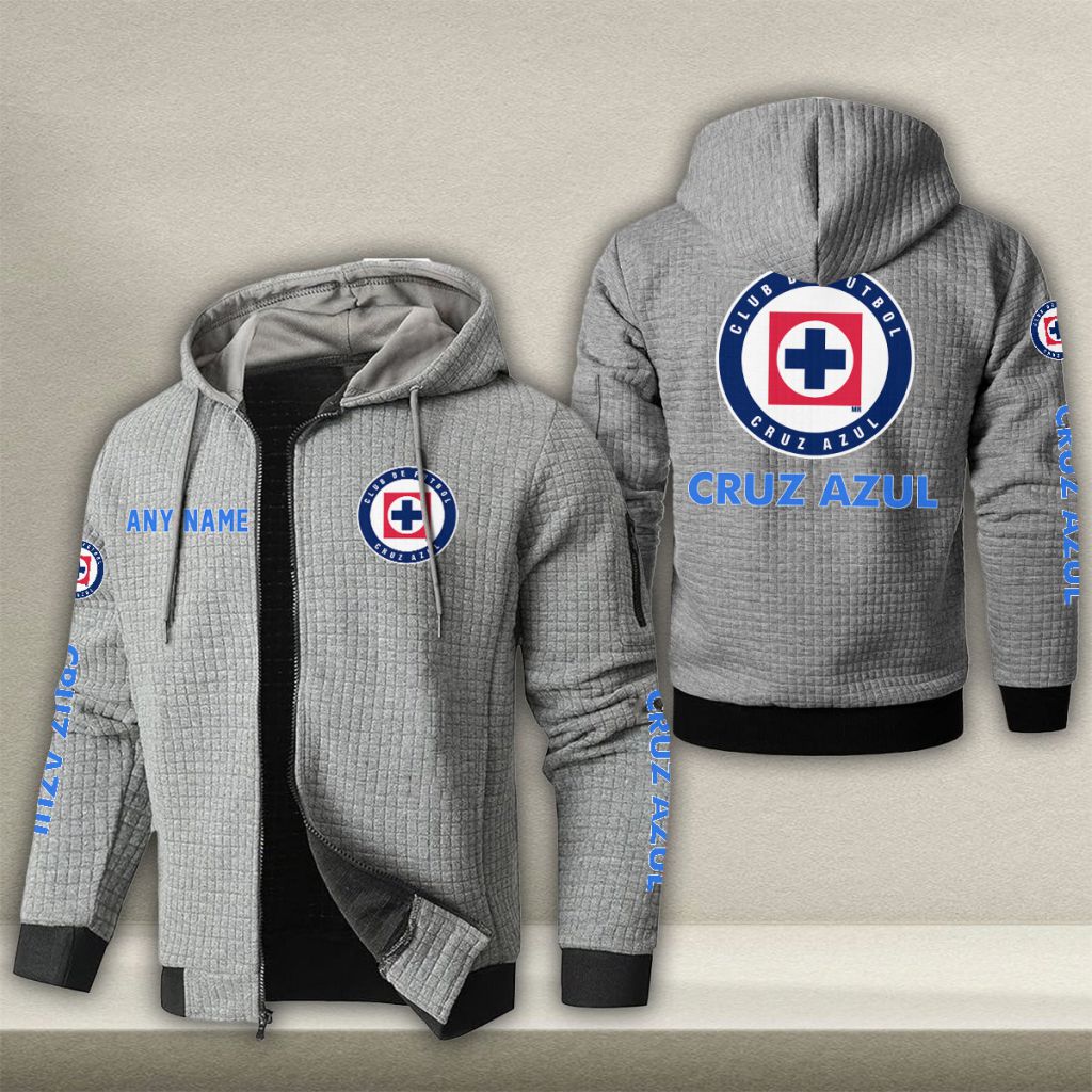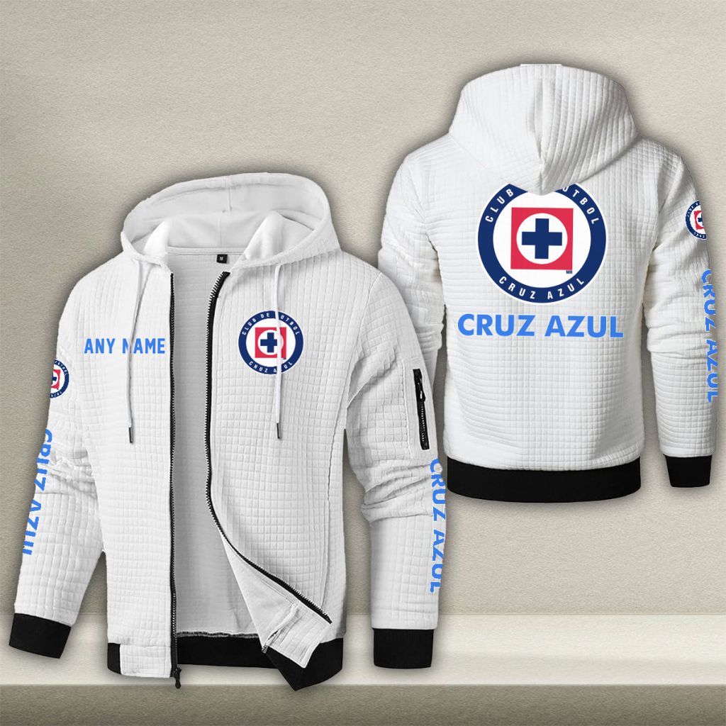 LIGA MX Cruz Azul Personalized Name Waffle Zip Hoodie Design ST2502