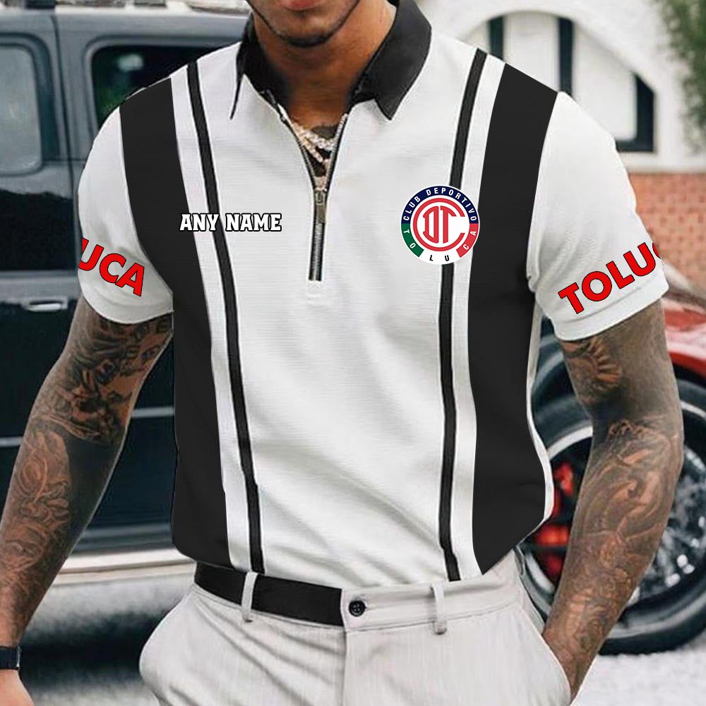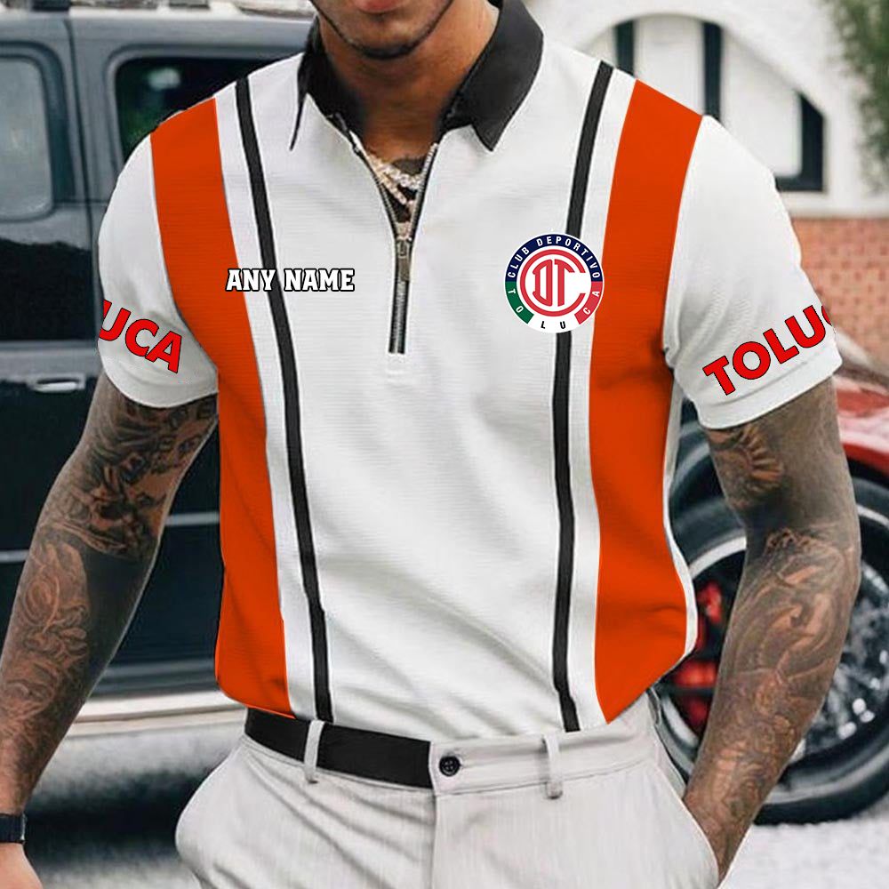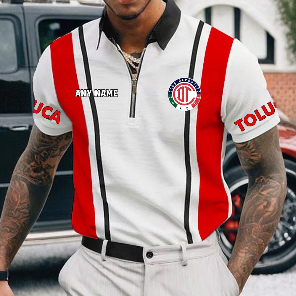 LIGA MX Deportivo Toluca Personalized Name Multi Color Zipper Polo Design ST2501