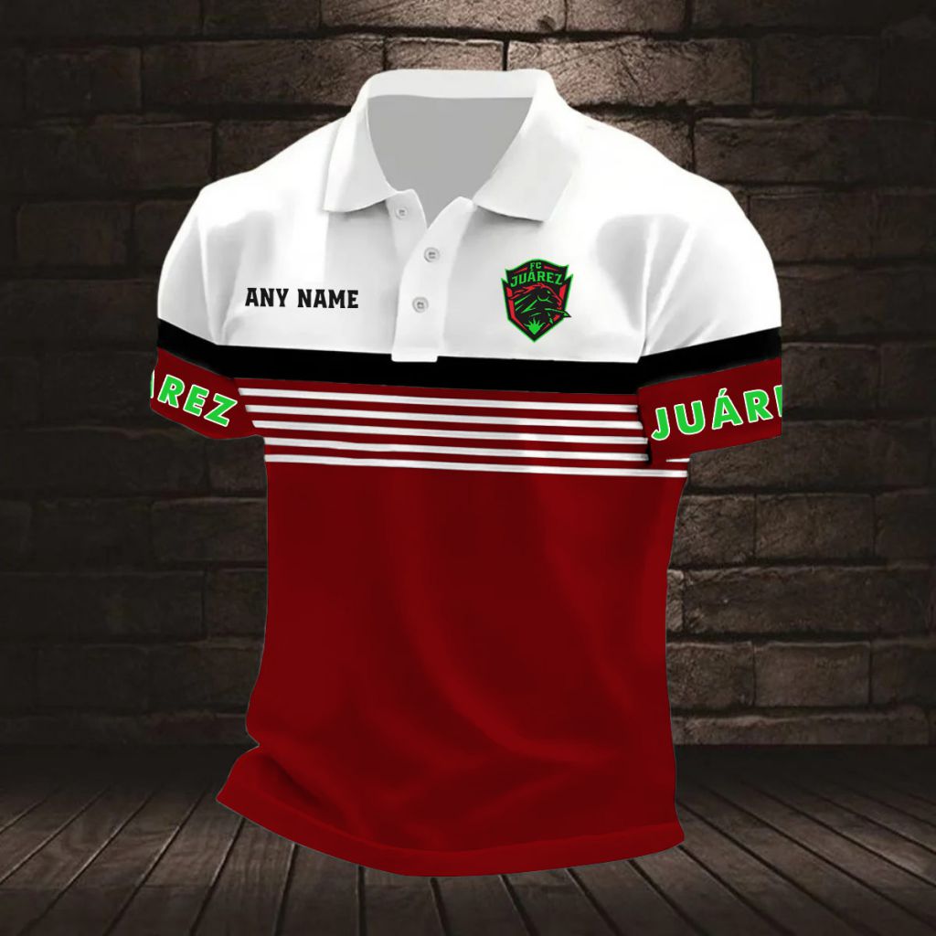 LIGA MX FC Juarez Personalized Name Stripped Multi Color Polo Design ST2501