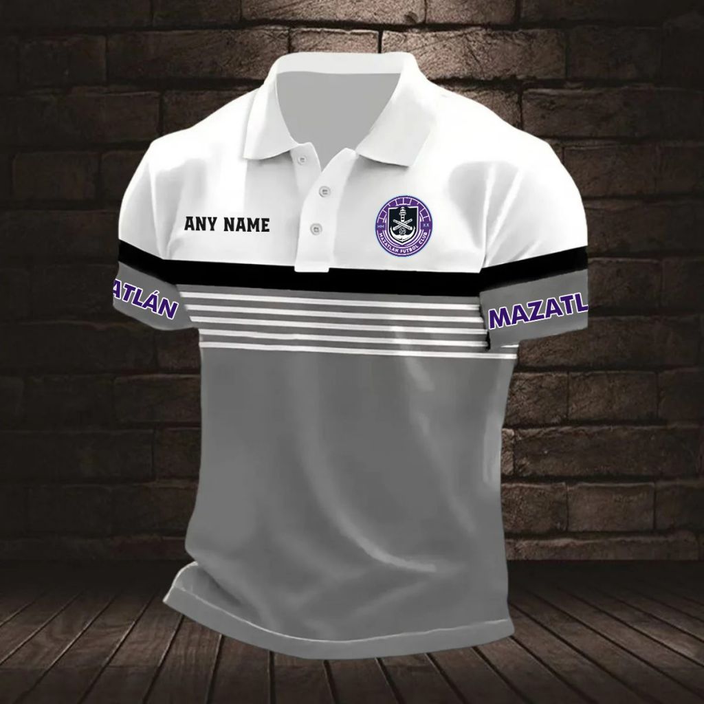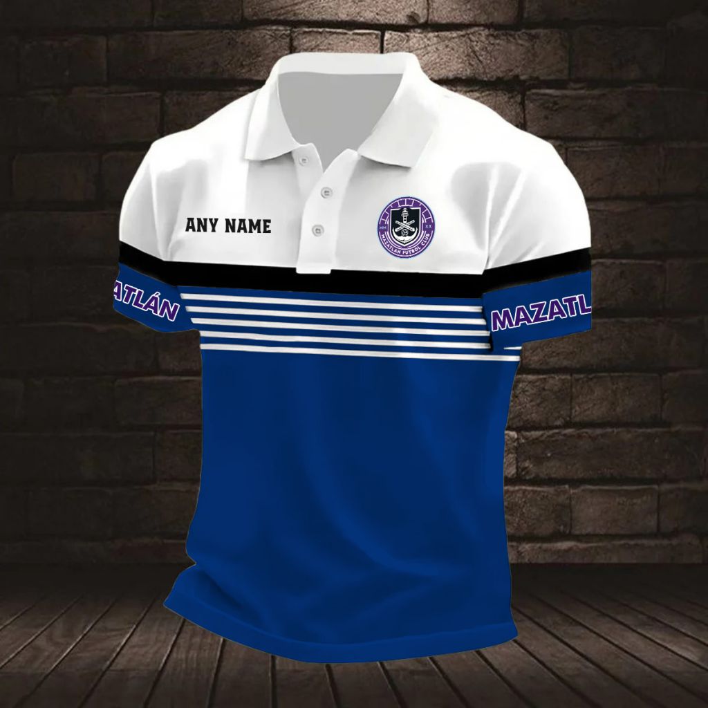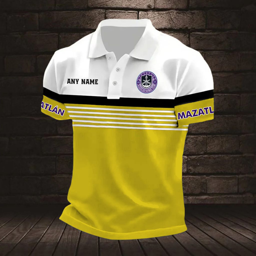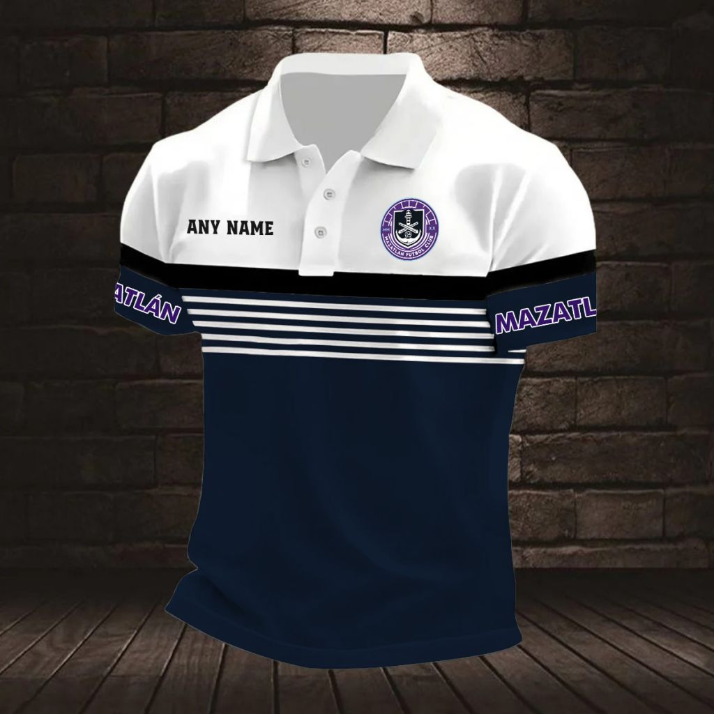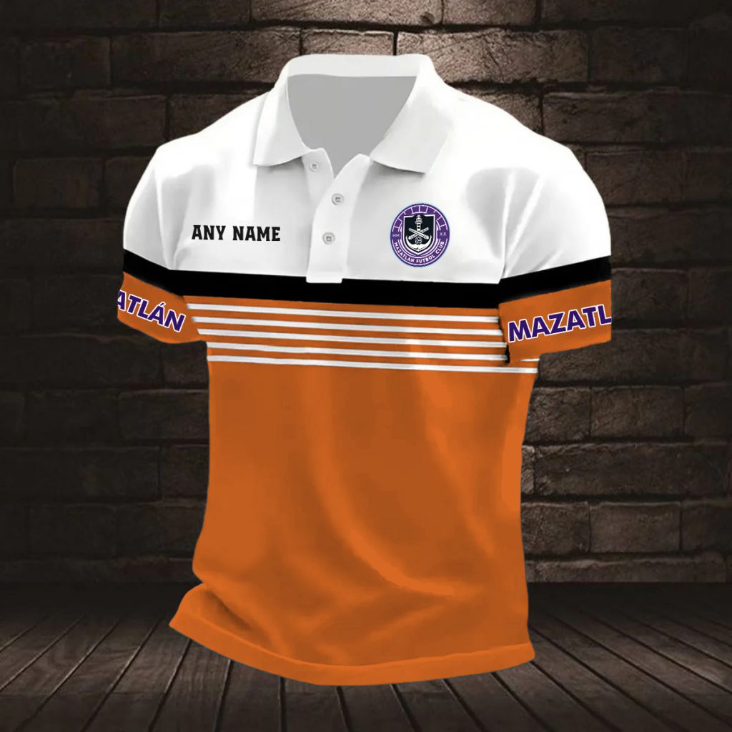 LIGA MX Mazatlan F.C Personalized Name Stripped Multi Color Polo Design ST2501