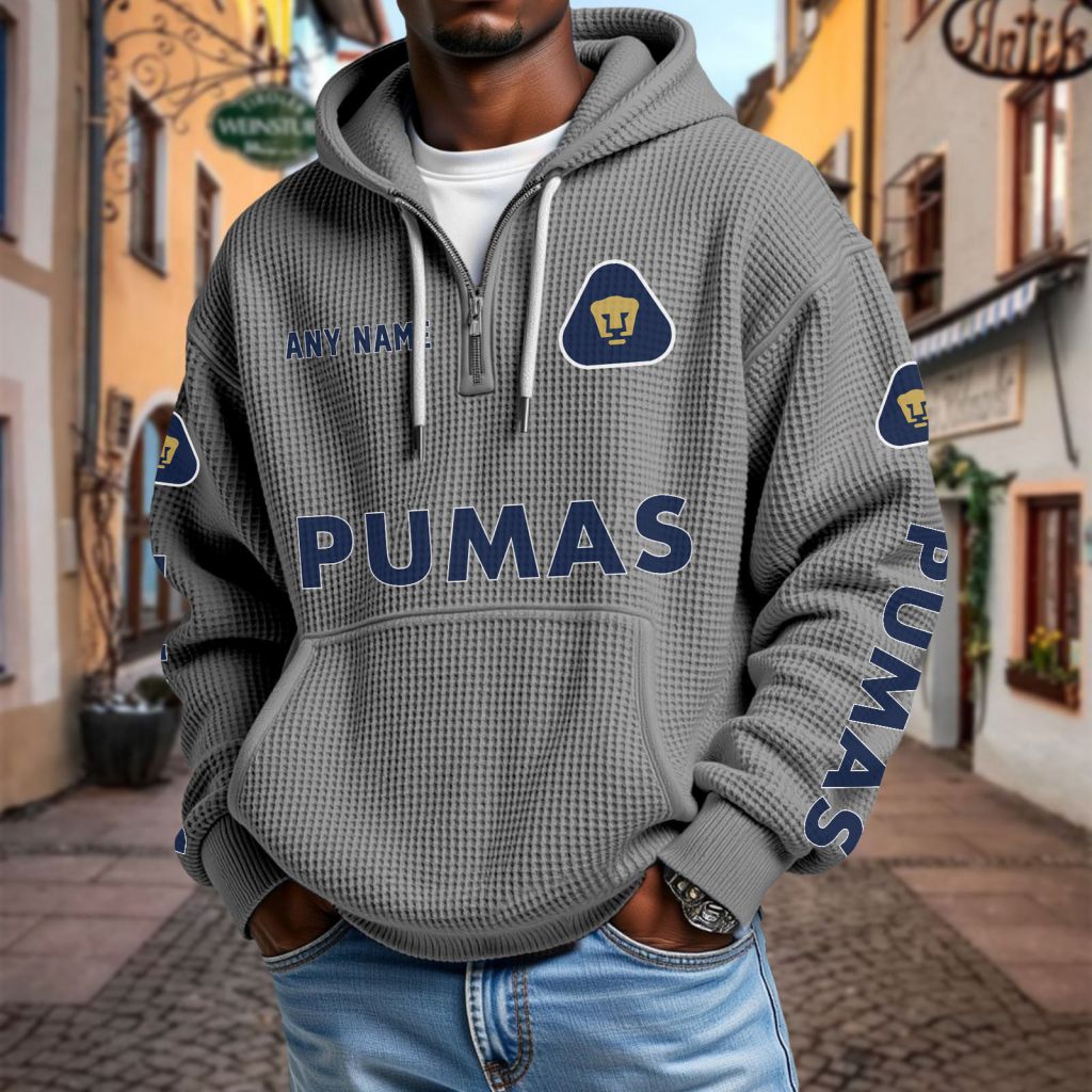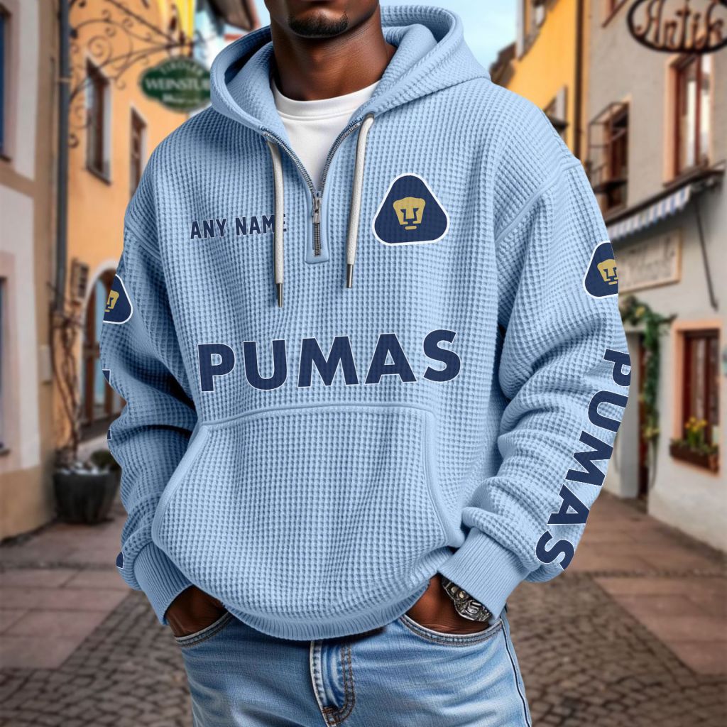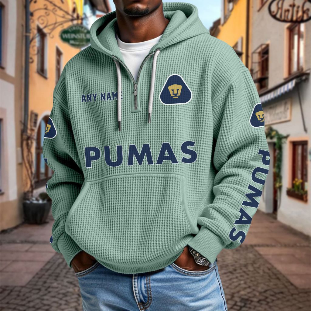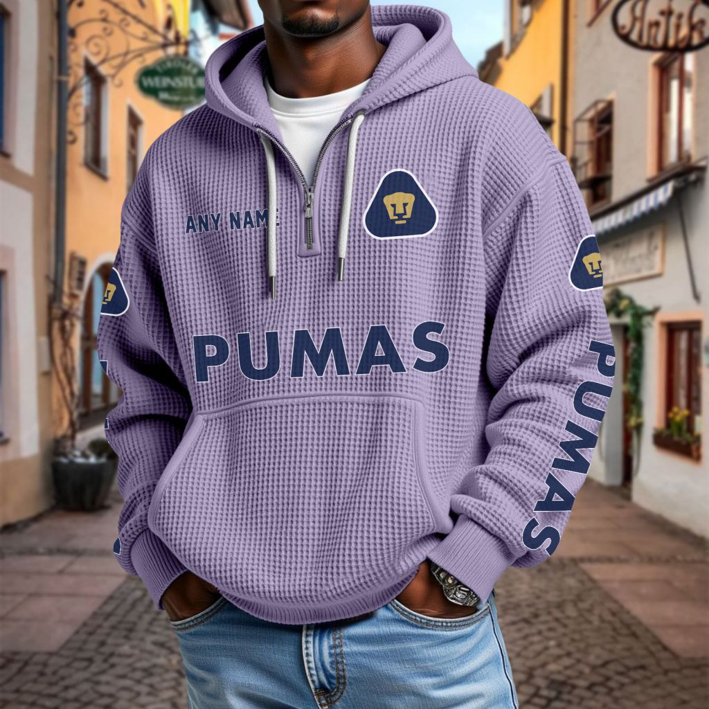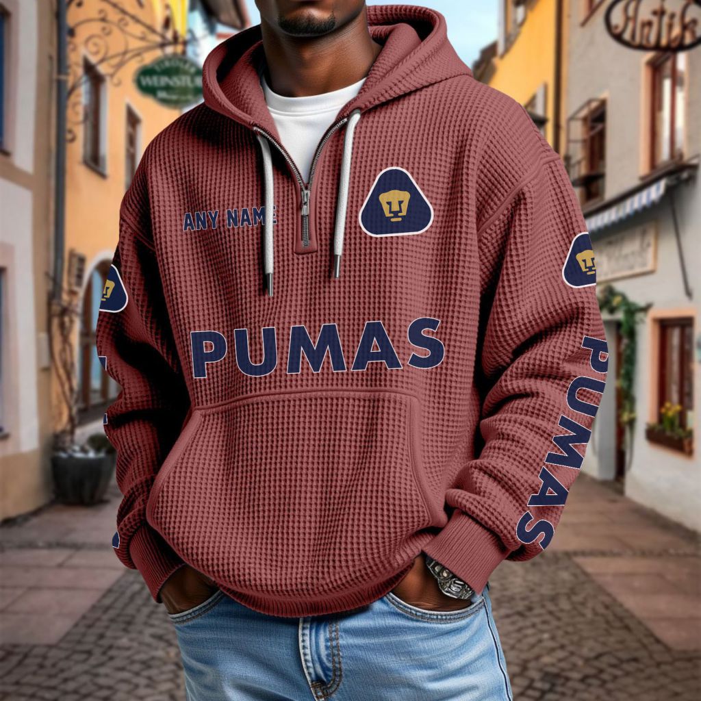 - Stay effortlessly stylish and comfortable with this premium waffle-textured hoodie. Designed with a relaxed fit and soft, breathable fabric, it’s perfect for layering or wearing on its own. The half-zip front and adjustable drawstring hood add modern versatility, while the kangaroo pocket keeps your hands warm and essentials close.