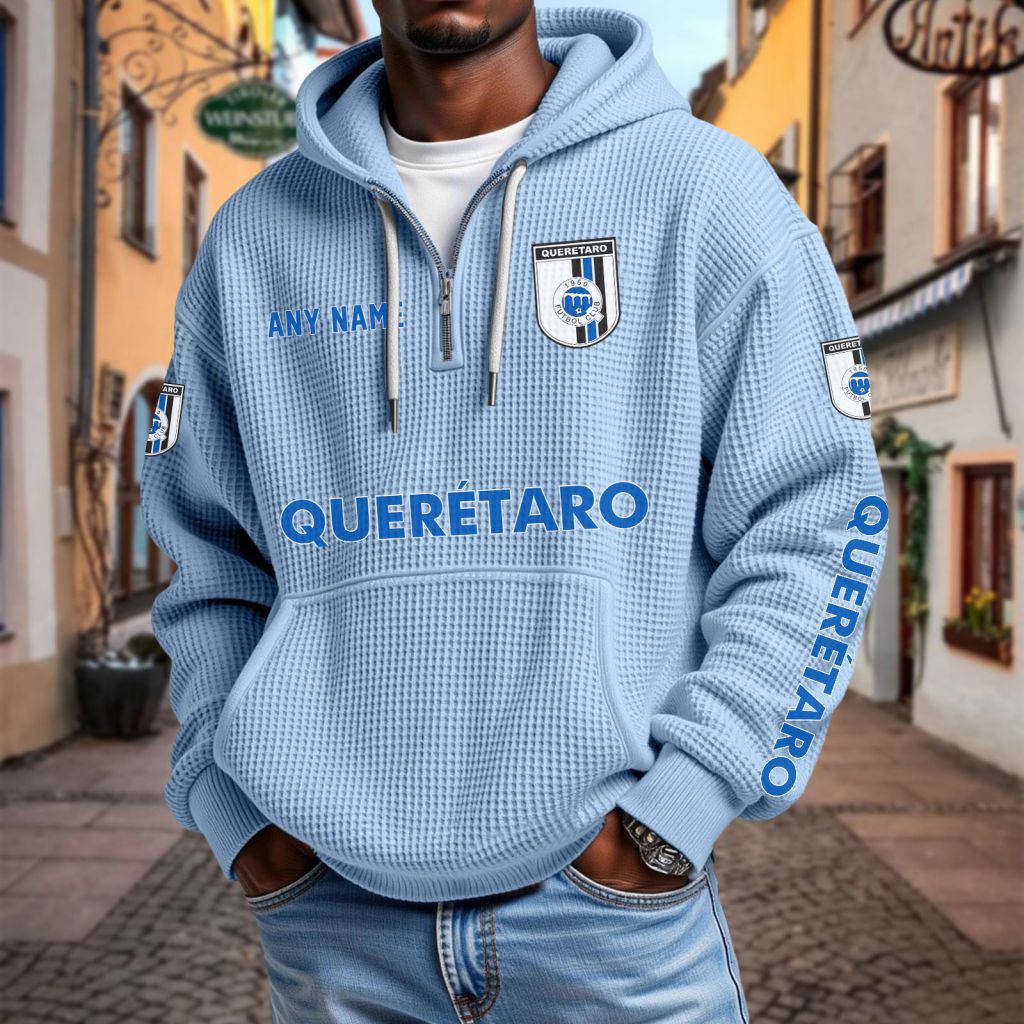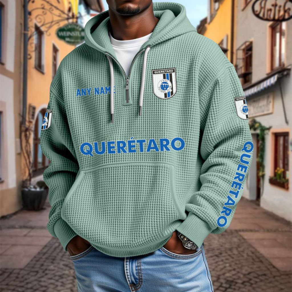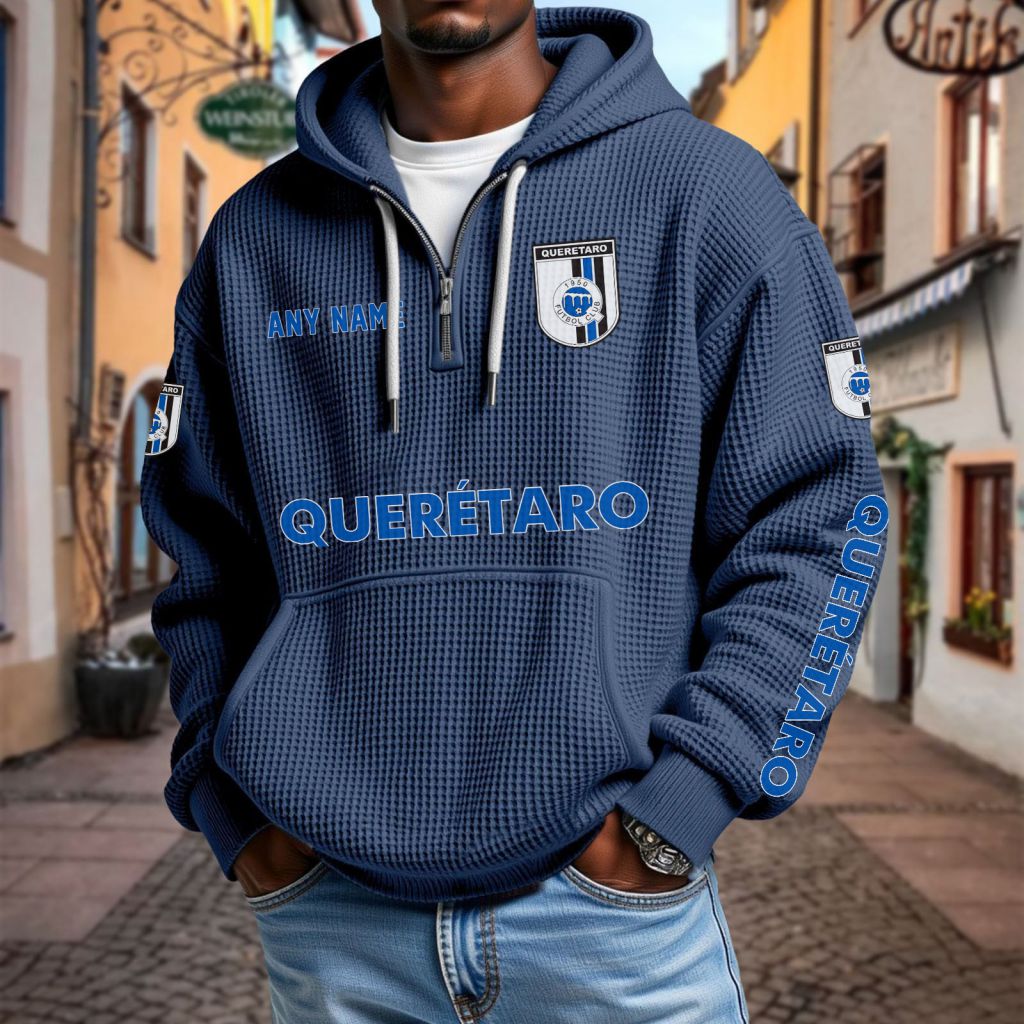 LIGA MX Queretaro F.C Personalized Name Waffle Quarter Zip Hoodie Design ST2501
