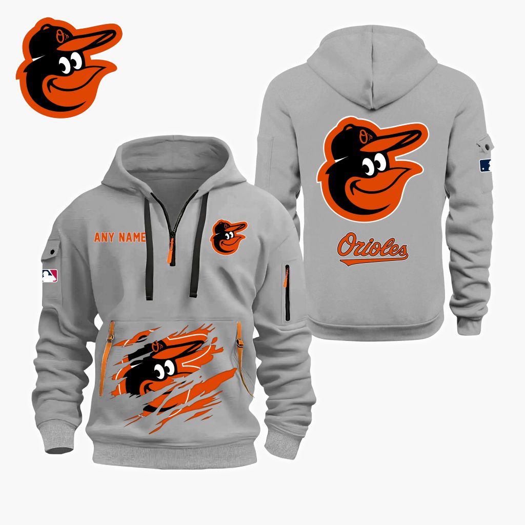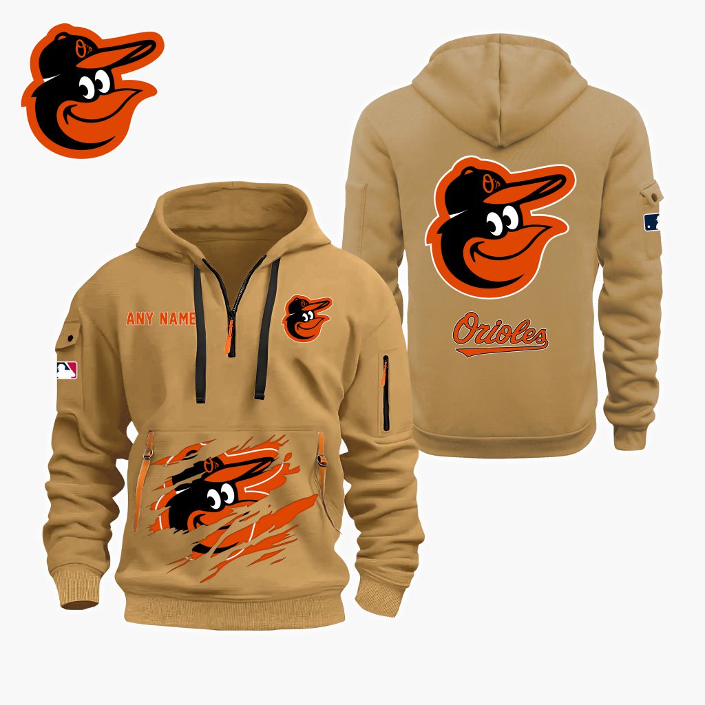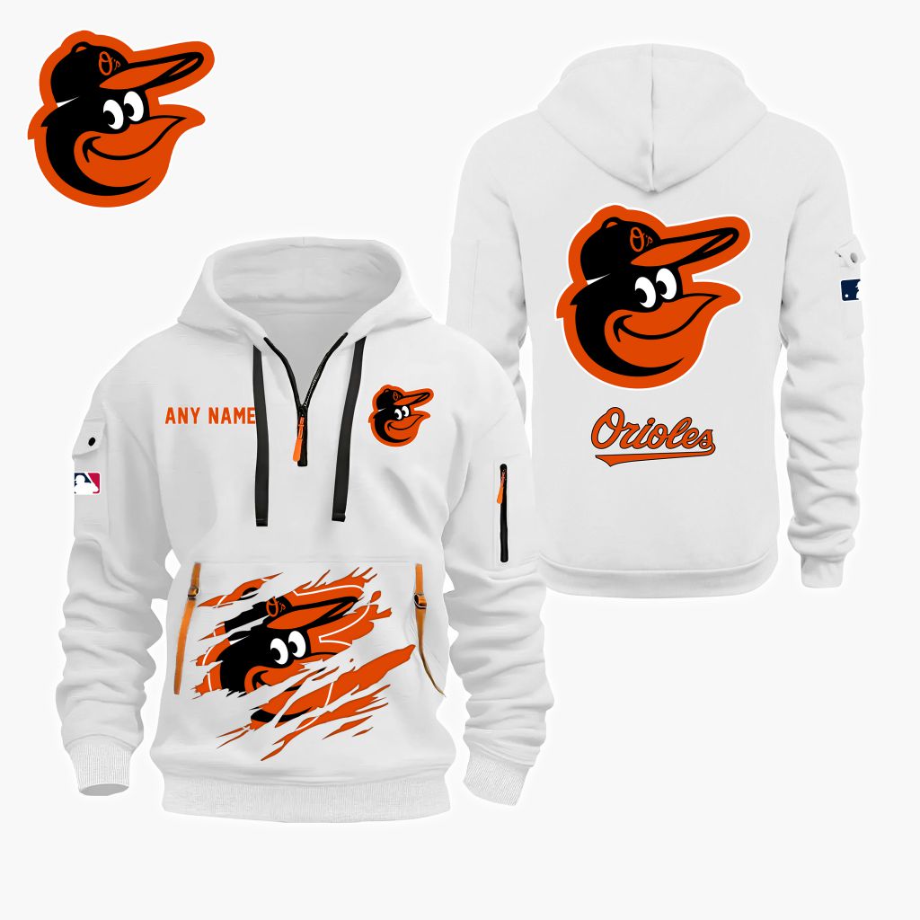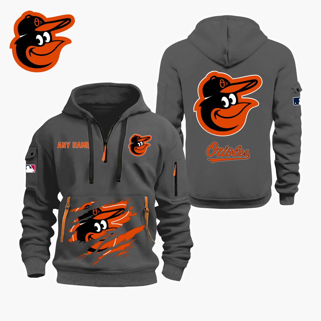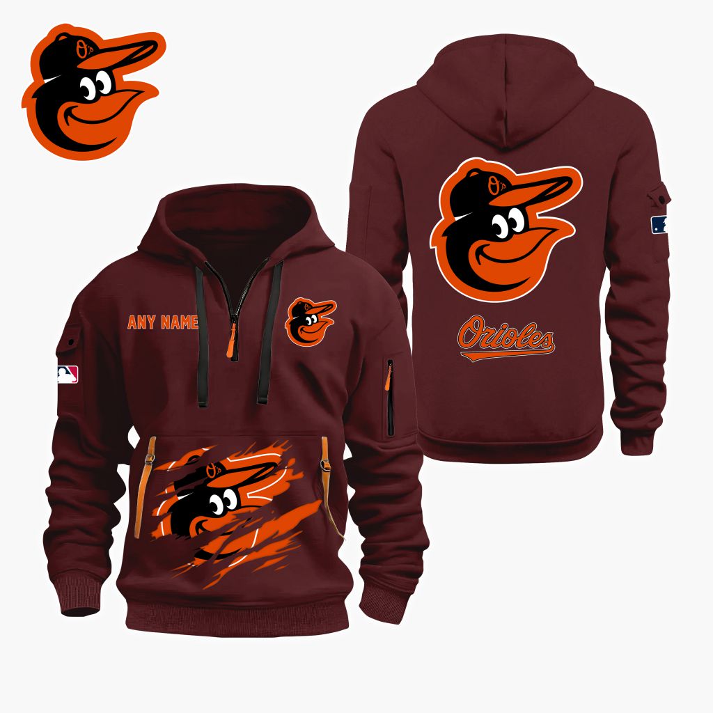 MLB Baltimore Orioles Personalized Name Quarter Zip Hoodie ST2501