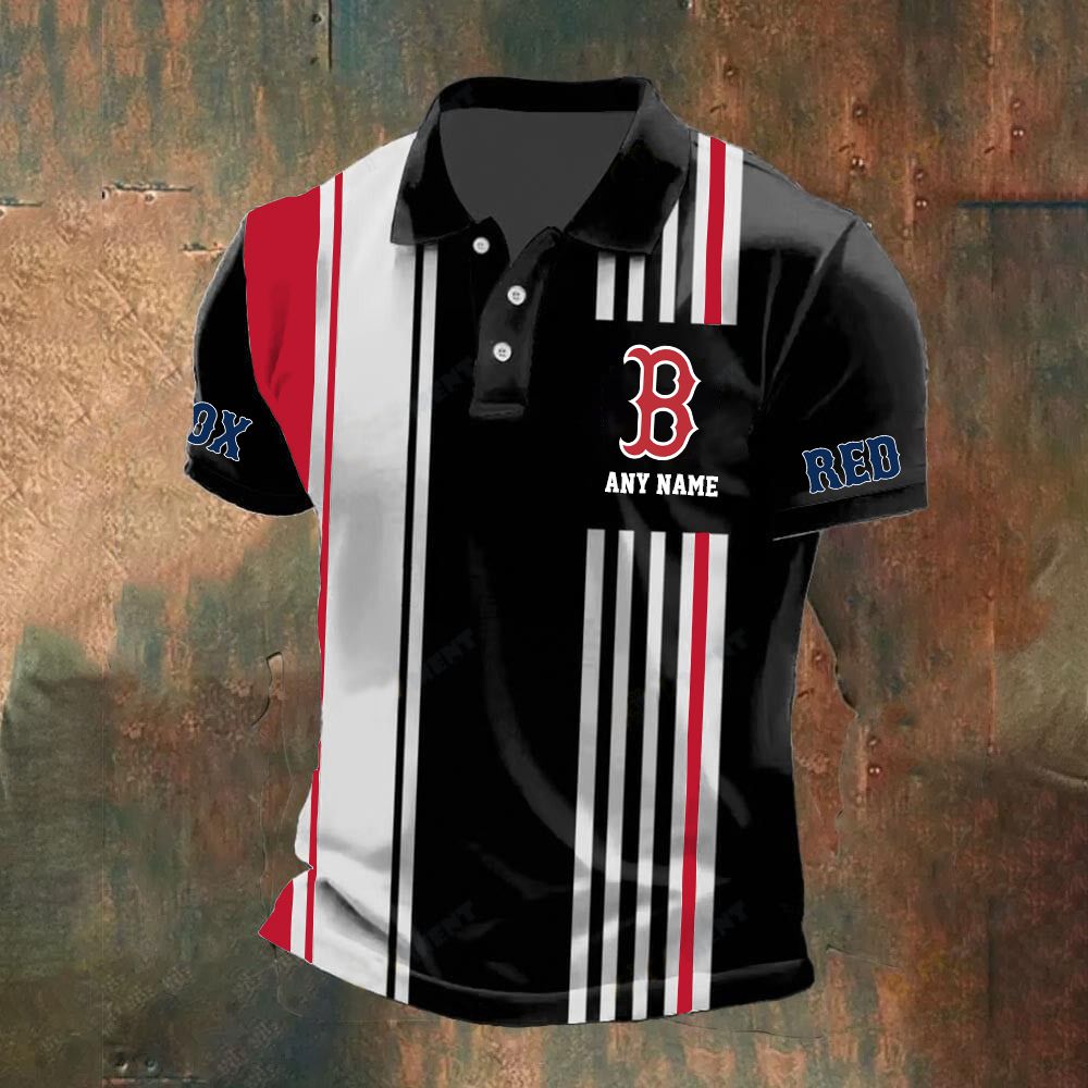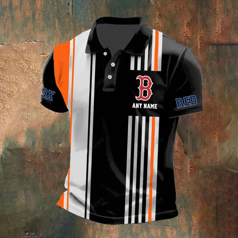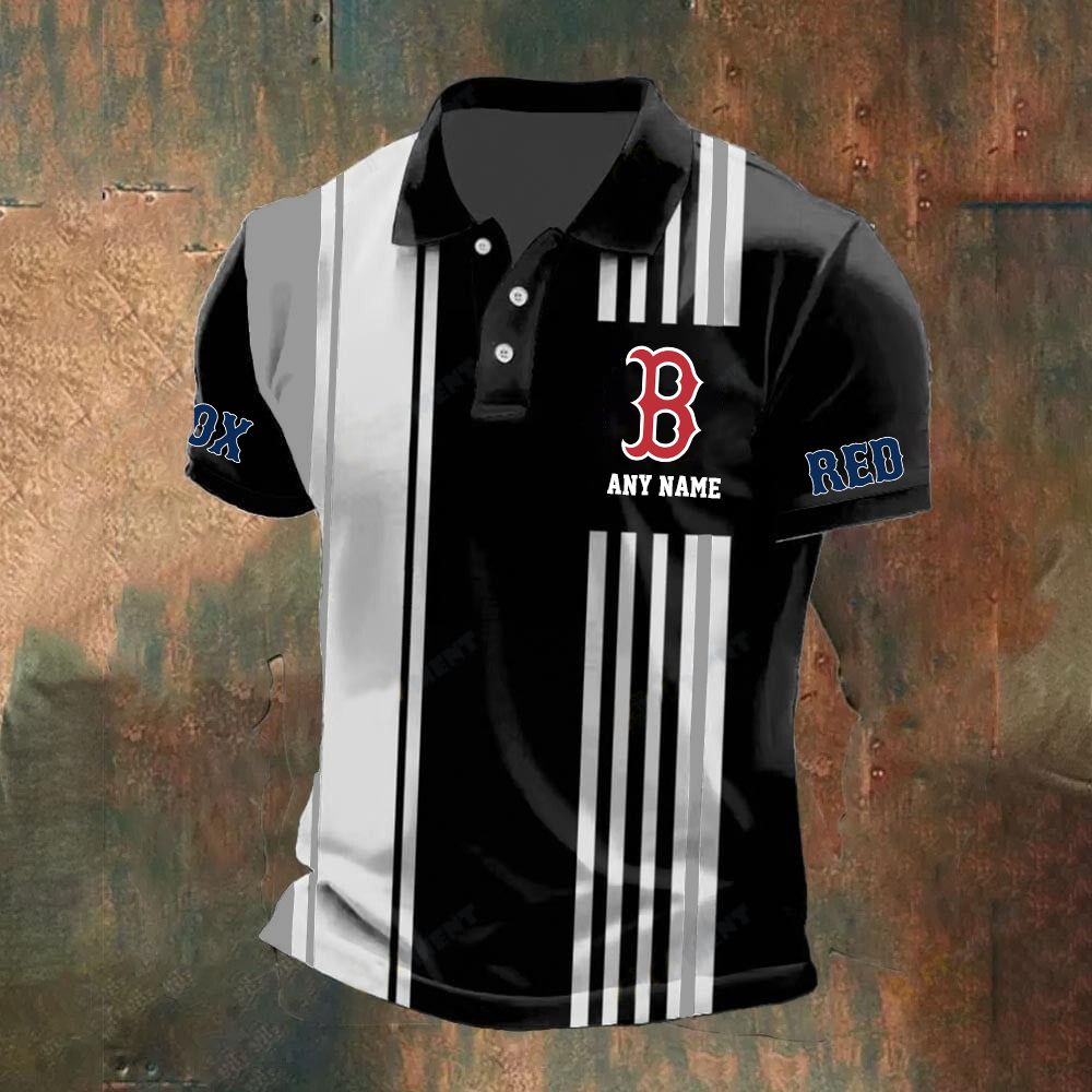 MLB Boston Red Sox Personalized Name Stripped Polo Design ST2502