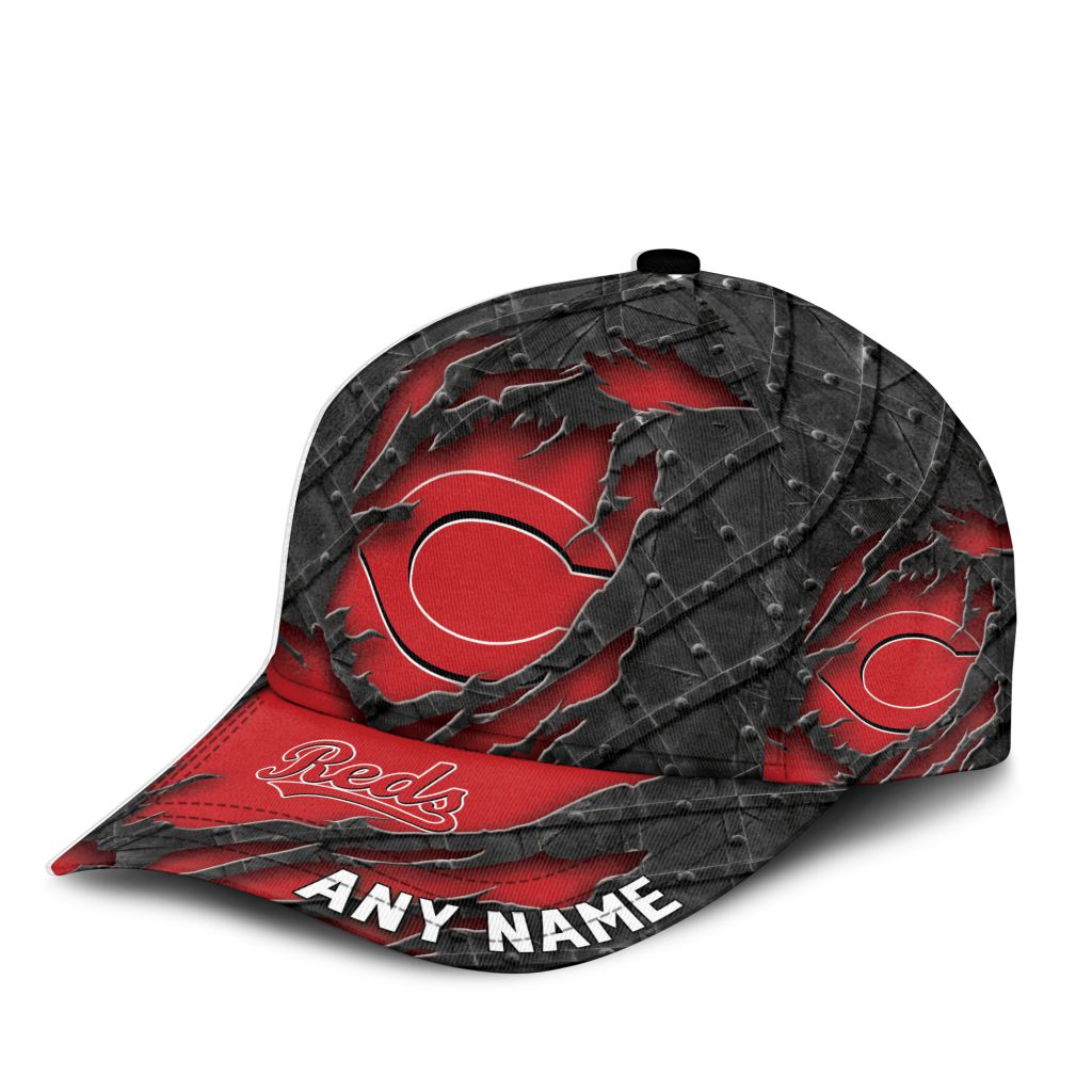 MLB Cincinnati Reds Personalized Name Black Metal Design Classic Cap ST2501